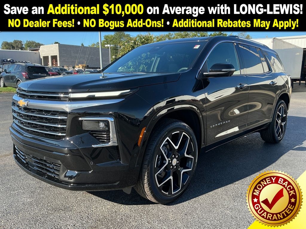 2025 Chevrolet Traverse High Country Certified. Mosaic Black Metallic High Country FWD 8-Speed Automatic 2.5L DOHC GM Certified, 12 Speakers, 1st & 2nd Row All-Weather Floor Liners (LPO), 3rd Row All-Weather Floor Liner (LPO), 3rd row seats: split-bench, 4-Wheel Disc Brakes, 6-Way Power Front Passenger Seat Adjuster, 8-Way Power Driver Seat Adjuster, ABS brakes, Air Conditioning, Alloy wheels, AM/FM radio: SiriusXM with 360L, Apple CarPlay/Android Auto, Auto High-beam Headlights, Auto tilt-away steering wheel, Auto-dimming door mirrors, Automatic temperature control, Bose Premium 12-Speaker Audio System Feature, Brake assist, Bumpers: body-color, Child-Seat-Sensing Airbag, Compass, Delay-off headlights, Driver 4-Way Power Lumbar Seat Adjuster, Driver door bin, Driver vanity mirror, Dual front impact airbags, Dual front side impact airbags, Electronic Stability Control, Emergency communication system: OnStar, Exterior Parking Camera Rear, Floor Liner Package (LPO), Four wheel independent suspension, Front anti-roll bar, Front Bucket Seats, Front Center Armrest, Front dual zone A/C, Front Passenger 4-Way Power Lumbar Seat Adjuster, Front reading lights, Fully automatic headlights, Garage door transmitter, Heated door mirrors, Heated front seats, Heated rear seats, Heated steering wheel, Illuminated entry, Low tire pressure warning, Memory seat, Navigation System, Occupant sensing airbag, Outside temperature display, Overhead airbag, Overhead console, Panic alarm, Passenger door bin, Passenger vanity mirror, Perforated Leather-Appointed Seat Trim, Power door mirrors, Power driver seat, Power Dual Glass Panoramic Sliding Sunroof, Power Liftgate, Power passenger seat, Power steering, Power windows, Preferred Equipment Group 1LZ, Radio data system, Radio: Audio System w/17.7" Diagonal Display, Rain sensing wipers, Rear air conditioning, Rear anti-roll bar, Rear reading lights, Rear window defroster, Rear window wiper, Remote keyless entry, Security system, SiriusXM w/360L Trial Subscription, Speed control, Speed-sensing steering, Spoiler, Steering wheel memory, Steering wheel mounted audio controls, Tachometer, Telescoping steering wheel, Tilt steering wheel, Traction control, Trip computer, Turn signal indicator mirrors, Variably intermittent wipers, Ventilated front seats, Voltmeter, Wheels: 22" High-Gloss Black Aluminum.