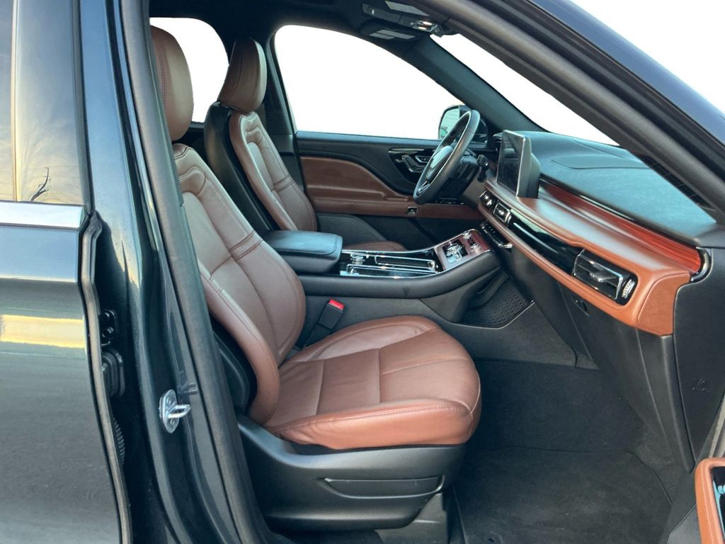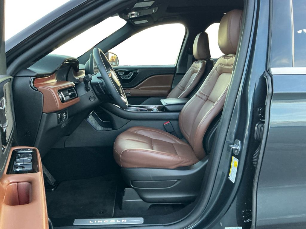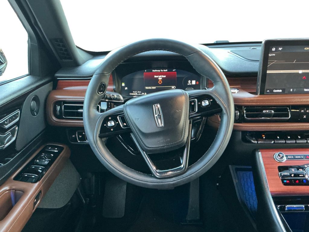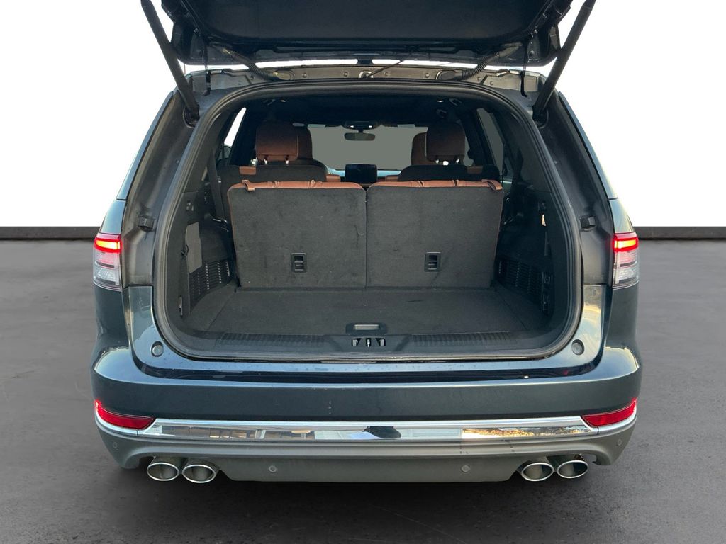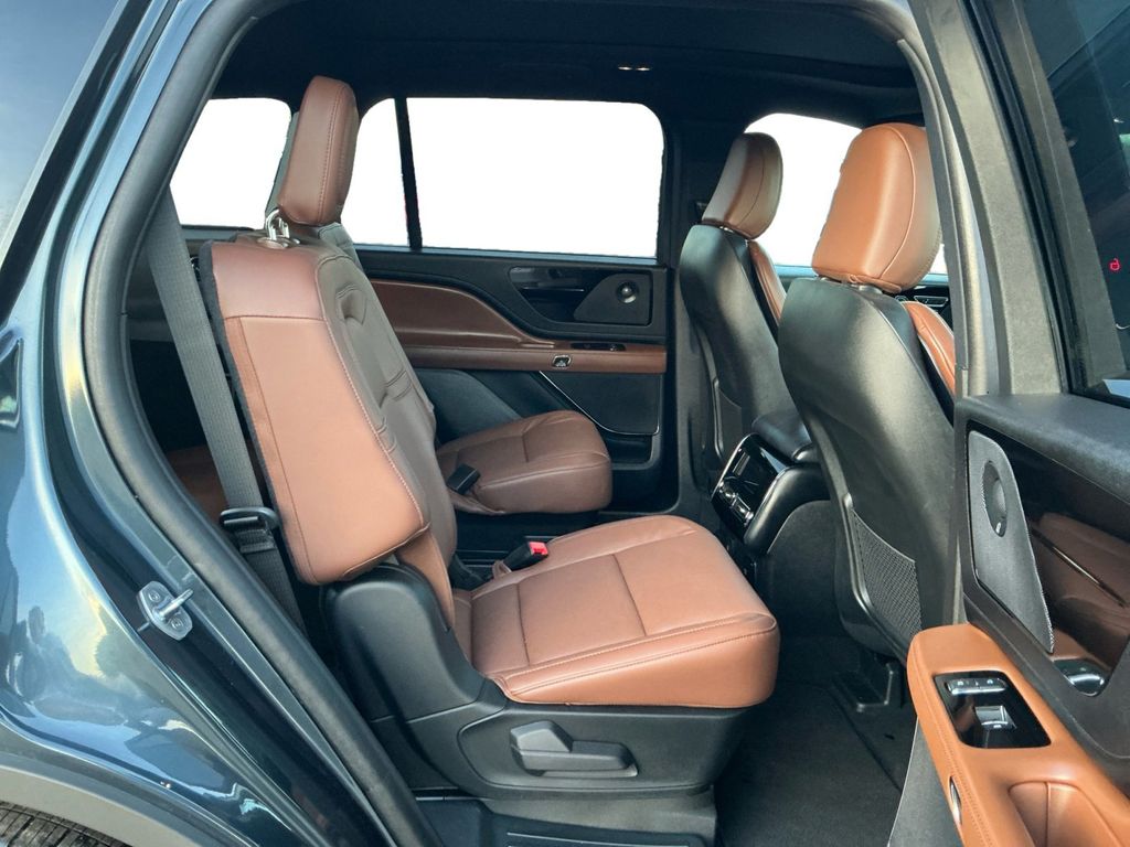 2023 Lincoln Aviator Reserve Flight Blue Metallic Clearcoat Reserve RWD 10-Speed Automatic 3.0L V6 14 Speakers, 3.58 Axle Ratio, 3rd row seats: split-bench, 4-Wheel Disc Brakes, ABS brakes, Active Park Assist 2.0, Air Conditioning, Alloy wheels, AM/FM radio: SiriusXM, Audio memory, Auto Air Refresh, Auto Heated/Ventilated Driver & Passenger Seats, Auto High-beam Headlights, Auto-dimming door mirrors, Auto-dimming Rear-View mirror, Automatic temperature control, Brake assist, Bumpers: body-color, Compass, Delay-off headlights, Driver door bin, Driver vanity mirror, Dual front impact airbags, Dual front side impact airbags, Electronic Stability Control, Elements Package Plus, Emergency communication system, Equipment Group 200A, Evasive Steering Assist, Four wheel independent suspension, Front anti-roll bar, Front Bucket Seats, Front Center Armrest, Front dual zone A/C, Front reading lights, Fully automatic headlights, Garage door transmitter, Hands-Free Liftgate Delete, Heated door mirrors, Heated front seats, Heated Steering Wheel, Heated VisioBlade Wipers, Heated/Ventilated 2nd Row Outboard Seats, HVAC memory, Illuminated entry, Intelligent Adaptive Cruise Control, Knee airbag, Leather steering wheel, Lincoln Co-Pilot360 1.5 Plus, Low tire pressure warning, Memory seat, Navigation System, Occupant sensing airbag, Outside temperature display, Overhead airbag, Overhead console, Panic alarm, Passenger door bin, Passenger vanity mirror, Power door mirrors, Power driver seat, Power Liftgate, Power moonroof: Panoramic Vista Roof, Power passenger seat, Power steering, Power windows, Premium Lthr Heated/Ventilated Fnt Captain's Chairs, Radio data system, Radio: Revel AM/FM Audio System w/14 Speakers, Rain sensing wipers, Rear air conditioning, Rear anti-roll bar, Rear audio controls, Rear dual zone A/C, Rear reading lights, Rear window defroster, Rear window wiper, Remote keyless entry, Reverse Brake Assist, Security system, SiriusXM Radio, Speed control, Speed-Sensitive Wipers, Split folding rear seat, Spoiler, Steering wheel memory, Steering wheel mounted A/C controls, Steering wheel mounted audio controls, SYNC 3 Communication & Entertainment System, Tachometer, Telescoping steering wheel, Tilt steering wheel, Traction control, Trip computer, Turn signal indicator mirrors, Variably intermittent wipers, Wheels: 20" Bright-Machined Aluminum.