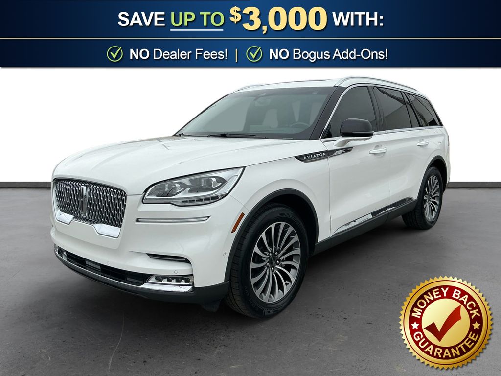 2023 Lincoln Aviator Reserve Certified. Pristine White Metallic Tri-Coat Reserve RWD 10-Speed Automatic 3.0L V6 Lincoln Certified, 14 Speakers, 3.58 Axle Ratio, 3rd row seats: split-bench, 4-Pin & 7-Pin Connectors, 4-Wheel Disc Brakes, ABS brakes, Active Park Assist 2.0, Adaptive Pixel LED Headlamps, Air Conditioning, All-Weather 1st & 2nd Row Floor Liners (16A), Alloy wheels, AM/FM radio: SiriusXM, Audio memory, Auto Air Refresh, Auto Heated/Ventilated Driver & Passenger Seats, Auto High-beam Headlights, Auto-dimming door mirrors, Auto-dimming Rear-View mirror, Automatic temperature control, Blind Spot Information System, Brake assist, Bumpers: body-color, Cargo Area Cover, Class IV Hitch & Wiring, Class IV Trailer Tow Package, Compass, Delay-off headlights, Driver door bin, Driver vanity mirror, Dual front impact airbags, Dual front side impact airbags, Electronic Stability Control, Elements Package Plus, Emergency communication system, Enhanced Security System Lite, Equipment Group 201A, Evasive Steering Assist, Four wheel independent suspension, Front anti-roll bar, Front Bucket Seats, Front Center Armrest, Front dual zone A/C, Front reading lights, Fully automatic headlights, Garage door transmitter, Hands-Free Liftgate Delete, Head-Up Display, Heated door mirrors, Heated front seats, Heated Steering Wheel, Heated VisioBlade Wipers, Heated/Ventilated 2nd Row Outboard Seats, HVAC memory, Illuminated entry, Illuminated Lincoln Star in Grille, Illumination Package, Intelligent Adaptive Cruise Control, Knee airbag, Leather steering wheel, LED Fog Lamps, Lincoln Co-Pilot360 1.5 Plus, Low tire pressure warning, Memory seat, Navigation System, Occupant sensing airbag, Outside temperature display, Overhead airbag, Overhead console, Panic alarm, Passenger door bin, Passenger vanity mirror, Phone As A Key, Power door mirrors, Power driver seat, Power Liftgate, Power moonroof: Panoramic Vista Roof, Power passenger seat, Power steering, Power windows, Premium Lthr Heated/Ventilated Fnt Captain's Chairs, Radio data system, Radio: Revel AM/FM Audio System w/14 Speakers, Rain sensing wipers, Rear air conditioning, Rear anti-roll bar, Rear audio controls, Rear dual zone A/C, Rear reading lights, Rear window defroster, Rear window wiper, Remote keyless entry, Reverse Brake Assist, Security system, SiriusXM Radio, Smart Trailer Tow, Speed control, Speed-Sensitive Wipers, Split folding rear seat, Spoiler, Steering wheel memory, Steering wheel mounted A/C controls, Steering wheel mounted audio controls, SYNC 3 Communication & Entertainment System, Tachometer, Telescoping steering wheel, Tilt steering wheel, Traction control, Trailer Sway Control, Trip computer, Turn signal indicator mirrors, Variably intermittent wipers, Wheels: 20" Bright-Machined Aluminum.