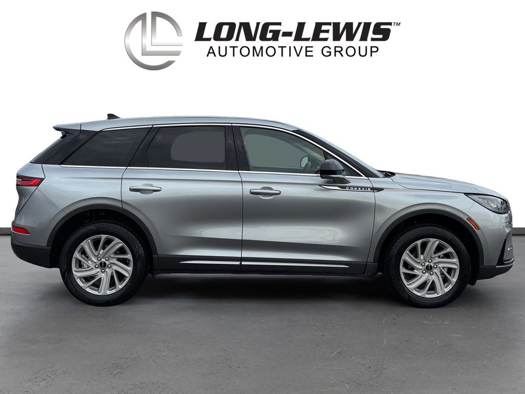 2024 Lincoln Corsair Premiere Certified. Silver Radiance Metallic Clearcoat Premiere FWD 8-Speed Automatic 2.0L I4 Lincoln Certified, 3.81 Axle Ratio, 4-Wheel Disc Brakes, 9 Speakers, ABS brakes, Air Conditioning, Alexa Built-In, Alloy wheels, AM/FM radio: SiriusXM, Apple CarPlay/Android Auto, Auto High-beam Headlights, Auto-dimming Rear-View mirror, Automatic temperature control, Brake assist, Bumpers: body-color, Compass, Delay-off headlights, Driver door bin, Driver vanity mirror, Dual front impact airbags, Dual front side impact airbags, Electronic Stability Control, Emergency communication system: 911 Assist, Equipment Group 100A, Four wheel independent suspension, Front anti-roll bar, Front Bucket Seats, Front Center Armrest, Front dual zone A/C, Front reading lights, Fully automatic headlights, Heated door mirrors, Heated front seats, Illuminated entry, Knee airbag, Lane Departure Warning System, Leather steering wheel, Lincoln Soft Touch Heated Front Captain's Chairs, Low tire pressure warning, Memory seat, Navigation system: Connected Navigation (3-year trial), Occupant sensing airbag, Outside temperature display, Overhead airbag, Overhead console, Panic alarm, Passenger door bin, Passenger vanity mirror, Power door mirrors, Power driver seat, Power Liftgate, Power passenger seat, Power steering, Power windows, Radio data system, Radio: Lincoln Premium Audio System w/MP3, Rear anti-roll bar, Rear Parking Sensors, Rear reading lights, Rear seat center armrest, Rear window defroster, Rear window wiper, Remote keyless entry, Security system, SiriusXM Radio, Speed control, Speed-sensing steering, Speed-Sensitive Wipers, Split folding rear seat, Spoiler, Steering wheel mounted A/C controls, Steering wheel mounted audio controls, SYNC 4 Communications & Entertainment System, Tachometer, Telescoping steering wheel, Tilt steering wheel, Traction control, Trip computer, Variably intermittent wipers, Wheels: 18" Warm Painted Alloy.