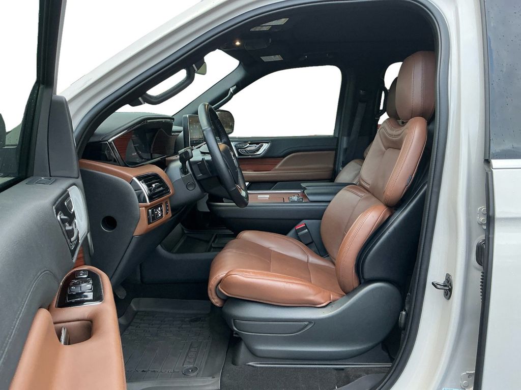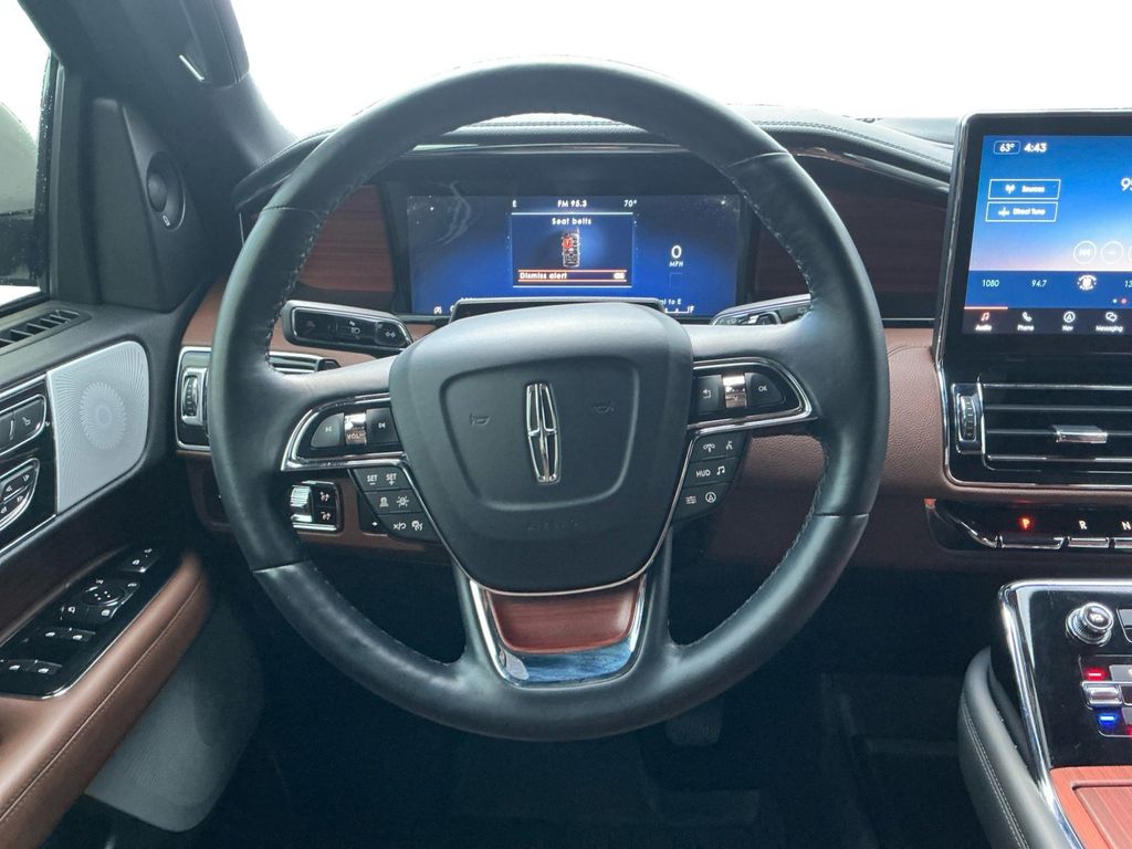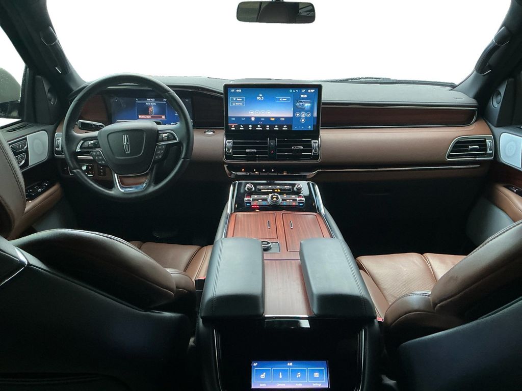 2024 Lincoln Navigator L Reserve Certified. Ceramic Pearl Metallic Tri-Coat Reserve 4WD 10-Speed Automatic V6 Lincoln Certified, 14 Speakers, 3.73 Axle Ratio, 3rd row seats: split-bench, 4-Wheel Disc Brakes, ABS brakes, Adaptive suspension, Adjustable pedals, Air Conditioning, All-Weather Floor Liners w/o Fr/Rr Carpet Flr Mats, Alloy wheels, AM/FM radio: SiriusXM with 360L, Apple CarPlay/Android Auto, Audio memory, Auto High-beam Headlights, Auto Start-Stop Technology, Auto tilt-away steering wheel, Auto-dimming door mirrors, Auto-dimming Rear-View mirror, Auto-leveling suspension, Automatic temperature control, Body-Color Exterior Mirror Finish, Bodyside moldings, Brake assist, Bumpers: body-color, Compass, Delay-off headlights, Driver door bin, Driver vanity mirror, Driver's Seat Mounted Armrest, Dual front impact airbags, Dual front side impact airbags, Electronic Stability Control, Emergency communication system: 911 Assist, Equipment Group 201A Reserve I, Exterior Parking Camera Rear, Four wheel independent suspension, Front anti-roll bar, Front Bucket Seats, Front dual zone A/C, Front fog lights, Front License Plate Bracket, Front reading lights, Fully automatic headlights, Garage door transmitter, Genuine wood dashboard insert, Genuine wood door panel insert, Head restraints memory, Heads-Up Display, Heated door mirrors, Heated front seats, Heated rear seats, Heated steering wheel, HVAC memory, Illuminated 1st & 2nd Row Seat Belts, Illuminated entry, Lane Departure Warning System, Leather steering wheel, Lincoln Lit Star in Grille, Low tire pressure warning, Luxury Package, Memory seat, Monochromatic Lincoln Badge, Monochromatic Lincoln Grille, Monochromatic Package, Navigation system: Connected Navigation (1-year trial), Occupant sensing airbag, Outside temperature display, Overhead airbag, Overhead console, Panic alarm, Passenger door bin, Passenger seat mounted armrest, Passenger vanity mirror, Pedal memory, Perfect Position Seats (30-Way) w/Active Motion, Power adjustable rear head restraints, Power door mirrors, Power driver seat, Power Liftgate, Power moonroof: Panoramic Vista Roof, Power passenger seat, Power steering, Power windows, Prem Lthr Auto Htd/Ventiltd Perfect Position Seats, Radio data system, Radio: Revel Audio System w/Satelllite/AM/FM/HD, Radio: Revel Ultima 3D Audio System w/28 Speakers, Rain sensing wipers, Rear air conditioning, Rear anti-roll bar, Rear audio controls, Rear reading lights, Rear window defroster, Rear window wiper, Reclining 3rd row seat, Remote keyless entry, Security system, SiriusXM w/360L, Speed control, Speed-sensing steering, Speed-Sensitive Wipers, Split folding rear seat, Spoiler, Steering wheel memory, Steering wheel mounted audio controls, SYNC 4 Communications & Entertainment System, Tachometer, Telescoping steering wheel, Tilt steering wheel, Traction control, Trip computer, Turn signal indicator mirrors, Variably intermittent wipers, Ventilated front seats, Ventilated rear seats, Voice-Activated Touchscreen Navigation System, Wheels: 22" Black Aluminum, Wheels: 22" Bright Machined Aluminum.