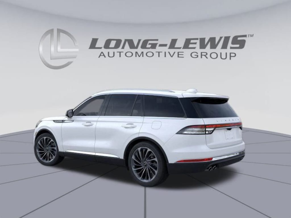 Pristine White Metallic Tri-Coat 2025 Lincoln Aviator Reserve fctp RWD 10-Speed Automatic 3.0L V6 14 Speakers, 30-Way Perfect Position Seats w/Active Motion, 3rd row seats: split-bench, 4-Wheel Disc Brakes, 40/Mini Console/40 Dual Captain's Chairs, ABS brakes, Adaptive Dynamic Bending Lighting, Adaptive Pixel LED Headlamps, Adaptive suspension, Advanced Heads-Up Display, Air Conditioning, Alloy wheels, AM/FM radio: SiriusXM, Apple CarPlay/Android Auto, Audio memory, Auto Air Refresh, Auto High-beam Headlights, Auto-dimming door mirrors, Auto-dimming Rear-View mirror, Automatic temperature control, Brake assist, Bumpers: body-color, Compass, Delay-off headlights, Driver door bin, Driver vanity mirror, Dual front impact airbags, Dual front side impact airbags, Electronic Stability Control, Equipment Group 200A, Four wheel independent suspension, Front anti-roll bar, Front Bucket Seats, Front Center Armrest, Front dual zone A/C, Front reading lights, Fully automatic headlights, Garage door transmitter, Heads-Up Display, Heated door mirrors, Heated front seats, Heated steering wheel, HVAC memory, Illuminated entry, Illuminated Lincoln Star in Grille, Illumination Package, Knee airbag, Leather steering wheel, Lincoln BlueCruise Equipped (4-Years Included), Lincoln Digital Experience, Lincoln Dynamic Signature Lighting, Low tire pressure warning, Luxury Package, Memory seat, Navigation system: Connected Navigation (1-year trial), Occupant sensing airbag, Outside temperature display, Overhead airbag, Overhead console, Panic alarm, Passenger door bin, Passenger vanity mirror, Power door mirrors, Power driver seat, Power Liftgate, Power moonroof: Panoramic Vista Roof, Power passenger seat, Power steering, Power windows, Premium Lthr Heated/Ventilated Fnt Captain's Chairs, Radio data system, Radio: Revel Audio System w/14 Speakers, Radio: Revel Ultima 3D Audio System w/28 Speakers, Rain sensing wipers, Rear air conditioning, Rear anti-roll bar, Rear audio controls, Rear dual zone A/C, Rear reading lights, Rear window defroster, Rear window wiper, Remote keyless entry, Security system, SiriusXM, Speed control, Speed Dependent Lighting, Speed-Sensitive Wipers, Split folding rear seat, Spoiler, Steering wheel memory, Steering wheel mounted A/C controls, Steering wheel mounted audio controls, Tachometer, Telescoping steering wheel, Tilt steering wheel, Traction control, Trip computer, Turn signal indicator mirrors, Variably intermittent wipers, Ventilated front seats, Wheels: 21" Bright-Machined Aluminum, Wheels: 22" Bright-Machined Aluminum, Wireless Charging Pad.