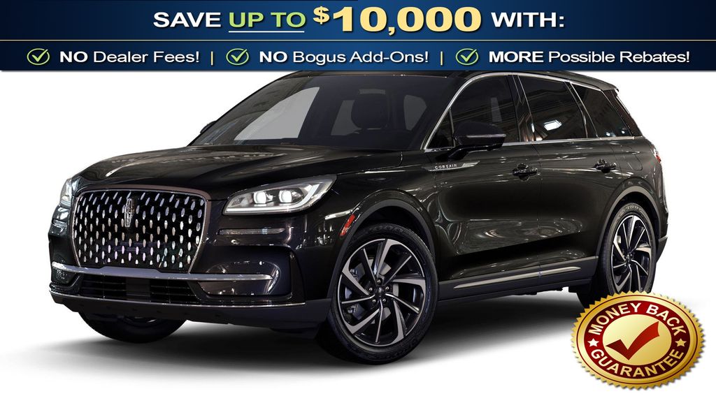 Infinite Black Metallic Clearcoat 2025 Lincoln Corsair Reserve fctp FWD 8-Speed Automatic 2.0L I4 19" Bright Machined Aluminum Wheels, 2 Additional USB Ports in Rear of Center Console, 360-Degree Camera, 4-Wheel Disc Brakes, 60/40 EasyFold Rear Seat w/Power Seatback Release, 9 Speakers, ABS brakes, Air Conditioning, Alexa Built-In, Alloy wheels, AM/FM radio: SiriusXM with 360L, Apple CarPlay/Android Auto, Auto High-beam Headlights, Auto-dimming Rear-View mirror, Automatic temperature control, Brake assist, Bumpers: body-color, Compass, Delay-off headlights, Driver door bin, Driver vanity mirror, Dual front impact airbags, Dual front side impact airbags, Electronic Stability Control, Emergency communication system: 911 Assist, Equipment Group 201A, Four wheel independent suspension, Frameless Auto Dimming Rearview Mirror, Front anti-roll bar, Front Bucket Seats, Front Center Armrest, Front dual zone A/C, Front Parking Sensors, Front reading lights, Fully automatic headlights, Hands-Free Liftgate, Heated door mirrors, Heated front seats, Heated Sideview Mirrors, Heated Steering Wheel, Heated/Ventilated Driver & Front Passenger Seats, Illuminated entry, Knee airbag, Leather steering wheel, Low tire pressure warning, Memory seat, Navigation system: Connected Navigation (4-year trial), Occupant sensing airbag, Outside temperature display, Overhead airbag, Overhead console, Panic alarm, Passenger door bin, Passenger vanity mirror, Phone As A Key (PAAK), Post-Collision Braking, Power door mirrors, Power driver seat, Power Liftgate, Power passenger seat, Power steering, Power Tilt/Telescoping Steering Column w/Memory, Power windows, Premium Leather-Trimmed Heated Captain's Chairs, Radio data system, Radio: Lincoln Premium Audio System w/MP3, Rain Sensing Wipers, Rear anti-roll bar, Rear Parking Sensors, Rear reading lights, Rear seat center armrest, Rear window defroster, Rear window wiper, Remote keyless entry, Reverse Brake Assist, Security system, SiriusXM w/360L Radio, Speed control, Speed-sensing steering, Speed-Sensitive Wipers, Split folding rear seat, Spoiler, Steering wheel mounted A/C controls, Steering wheel mounted audio controls, SYNC 4 Communications & Entertainment System, Tachometer, Telescoping steering wheel, Tilt steering wheel, Traction control, Trip computer, Universal Garage Door Opener, Variably intermittent wipers, Wheels: 20" Bright Machined Aluminum, Windshield Wiper De-Icer, Wireless Charging Pad.