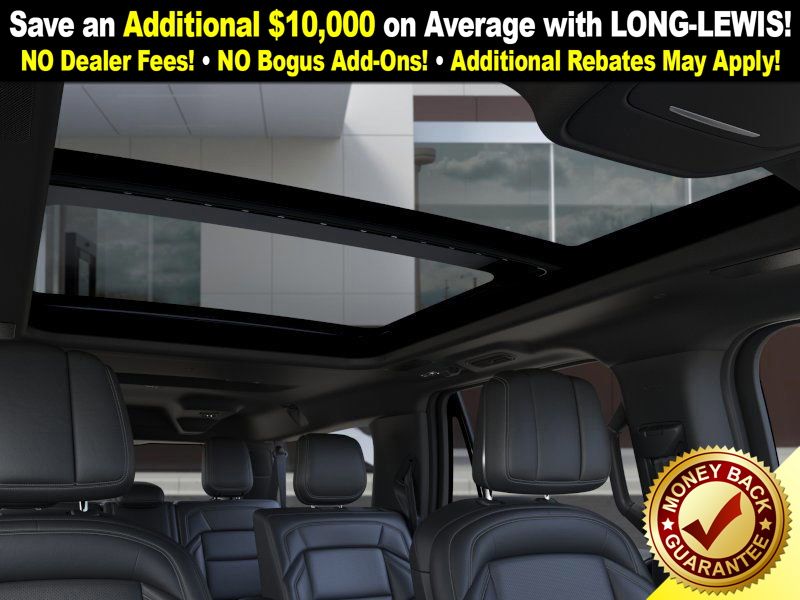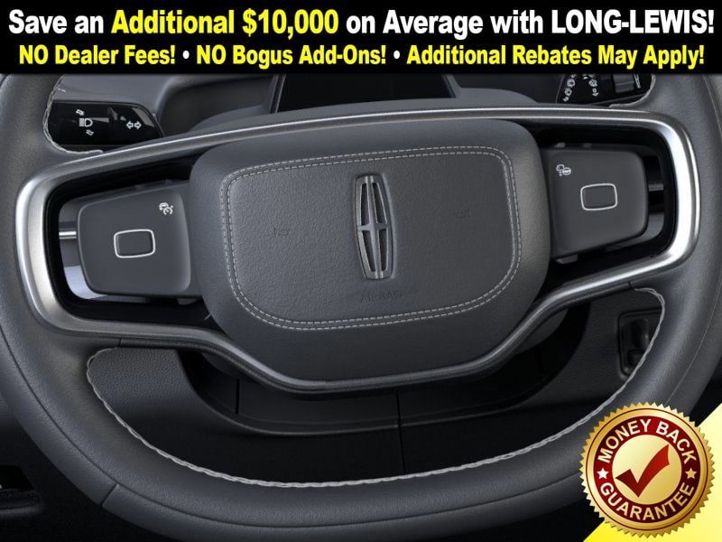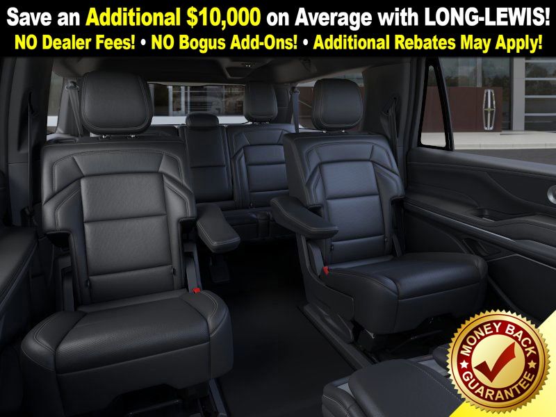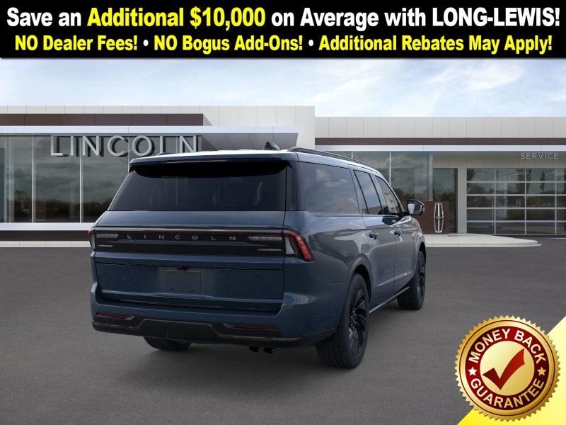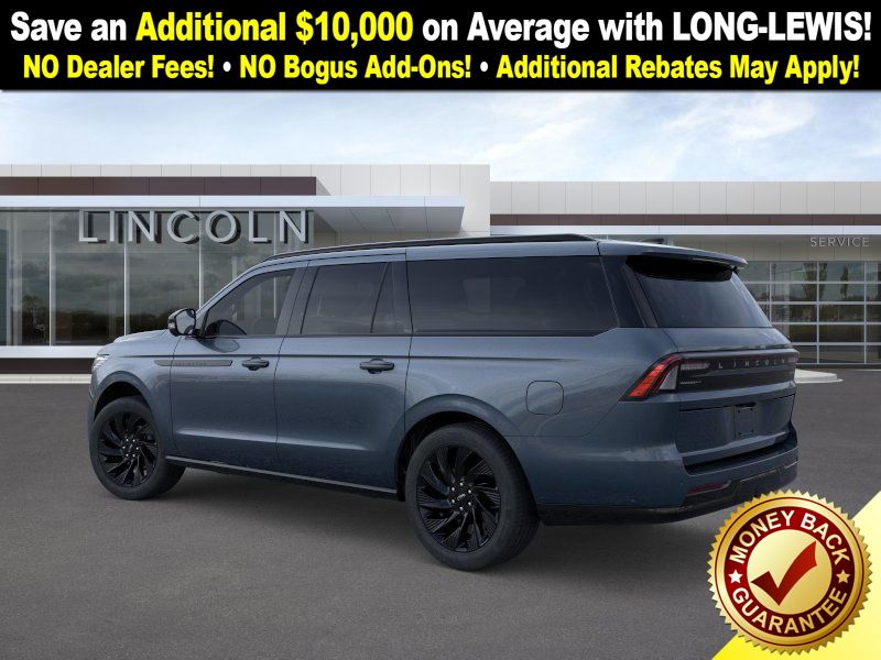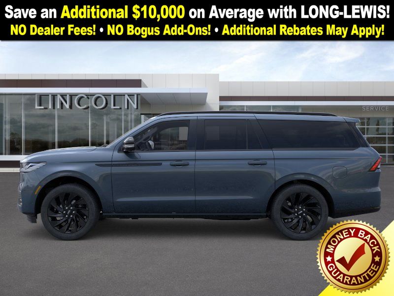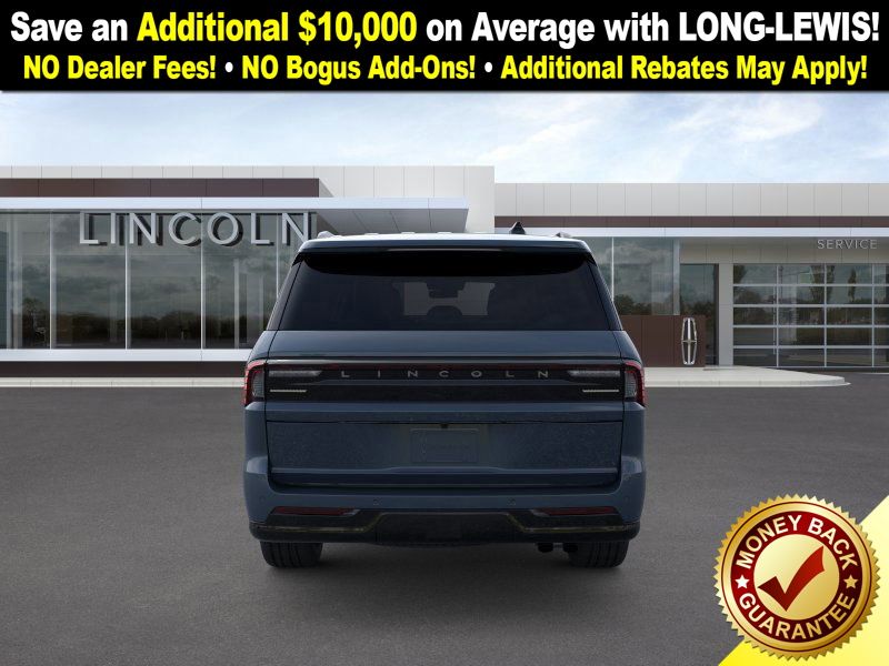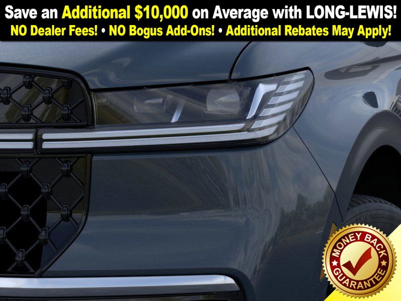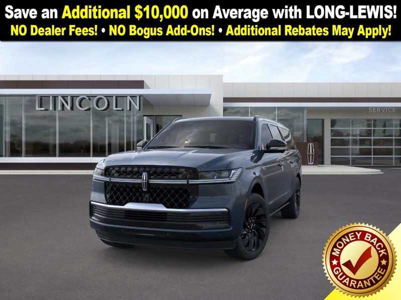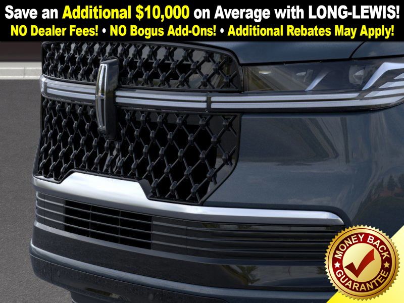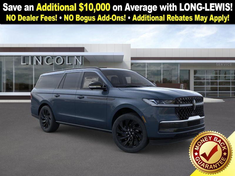 Flight Blue Metallic Clearcoat 2025 Lincoln Navigator L Reserve NLT 4WD 10-Speed Automatic 3.5L V6 28 Speakers, 3rd row seats: split-bench, 4-Wheel Disc Brakes, ABS brakes, Adaptive suspension, Adjustable pedals, Air Conditioning, Alloy wheels, AM/FM radio: SiriusXM with 360L, Apple CarPlay/Android Auto, Audio memory, Auto High-beam Headlights, Auto Htd & Ventilated Premium Lthr Captain's Chair, Auto Start-Stop Technology, Auto tilt-away steering wheel, Auto-dimming door mirrors, Auto-dimming Rear-View mirror, Auto-leveling suspension, Automatic temperature control, Black Accent Badge, Black Accent Interior Pack, Black Beltline Molding, Black Painted Roof Rails, Brake assist, Bumpers: body-color, Compass, Delay-off headlights, Driver door bin, Driver vanity mirror, Driver's Seat Mounted Armrest, Dual front impact airbags, Dual front side impact airbags, Electronic Stability Control, Emergency communication system: 911 Assist, Exterior Parking Camera Rear, Four wheel independent suspension, Front anti-roll bar, Front Bucket Seats, Front Bumper Fascia, Front dual zone A/C, Front reading lights, Fully automatic headlights, Garage door transmitter, Heated door mirrors, Heated front seats, Heated rear seats, Heated steering wheel, HVAC memory, Illuminated entry, Jet Appearance Package, Leather steering wheel, Lincoln Connect, Lincoln Lit Star, Lincoln Premium Connectivity, Low tire pressure warning, Memory seat, Navigation system: Connected Navigation (1-year trial), Occupant sensing airbag, Outside temperature display, Overhead airbag, Overhead console, Panic alarm, Passenger door bin, Passenger seat mounted armrest, Passenger vanity mirror, Pedal memory, Power adjustable front head restraints, Power adjustable rear head restraints, Power door mirrors, Power driver seat, Power moonroof, Power passenger seat, Power steering, Power windows, Radio data system, Radio: Revel Ultima 3D AM/FM/HD Audio System, Rain sensing wipers, Rear air conditioning, Rear anti-roll bar, Rear audio controls, Rear reading lights, Rear window defroster, Rear window wiper, Reclining 3rd row seat, Remote keyless entry, Security system, SiriusXM w/360L, Speed control, Speed-sensing steering, Speed-Sensitive Wipers, Split folding rear seat, Spoiler, Steering wheel memory, Steering wheel mounted audio controls, Tachometer, Telescoping steering wheel, Tilt steering wheel, Traction control, Trip computer, Turn signal indicator mirrors, Unique Lincoln Grille Pillar Black Surround, Variably intermittent wipers, Ventilated front seats, Wheels: 22" Dark Tarnished Aluminum, Wheels: 22" High-Gloss Ebony Aluminum.