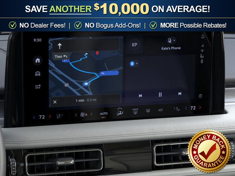 Lincoln Connectivity Package (4-Years), 10 Speakers, 3rd row seats: split-bench, 4-Wheel Disc Brakes, ABS brakes, Adaptive suspension, Air Conditioning, Alloy wheels, AM/FM radio: SiriusXM, Apple CarPlay/Android Auto, Audio memory, Auto High-beam Headlights, Auto-dimming door mirrors, Auto-dimming Rear-View mirror, Automatic temperature control, Brake assist, Bumpers: body-color, Compass, Delay-off headlights, Driver door bin, Driver vanity mirror, Dual front impact airbags, Dual front side impact airbags, Electronic Stability Control, Emergency communication system: 911 Assist, Four wheel independent suspension, Front anti-roll bar, Front Bucket Seats, Front Center Armrest, Front dual zone A/C, Front reading lights, Fully automatic headlights, Garage door transmitter, Heads-Up Display, Heated door mirrors, Heated Front Driver and Passenger Seats, Heated front seats, Heated steering wheel, HVAC memory, Illuminated entry, Knee airbag, Leather steering wheel, Lincoln App, Lincoln BlueCruise Equipped (4-Years Included), Lincoln Digital Experience, Low tire pressure warning, Memory seat, Navigation system: Google Maps, Occupant sensing airbag, Outside temperature display, Overhead airbag, Overhead console, Panic alarm, Passenger door bin, Passenger vanity mirror, Power door mirrors, Power driver seat, Power Liftgate, Power passenger seat, Power steering, Power windows, Radio data system, Radio: Lincoln Premium AM/FM/HD Audio System with 10 Speakers, Rain sensing wipers, Rear air conditioning, Rear anti-roll bar, Rear audio controls, Rear reading lights, Rear window defroster, Rear window wiper, Remote keyless entry, Security system, SiriusXM, Speed control, Speed-Sensitive Wipers, Split folding rear seat, Spoiler, Steering wheel mounted A/C controls, Steering wheel mounted audio controls, Tachometer, Telescoping steering wheel, Tilt steering wheel, Traction control, Trip computer, Turn signal indicator mirrors, Variably intermittent wipers, and Wheels: 20" Magnetic Bright-Machined Aluminum.