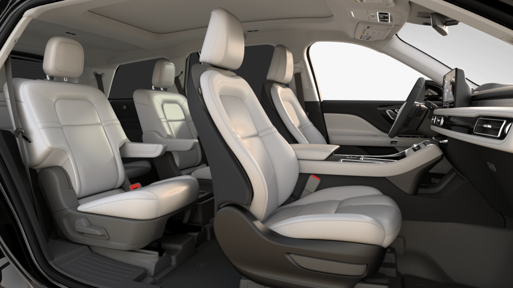 Lincoln Connectivity Package (4-years included), 10 Speakers, 3rd row seats: split-bench, 4-Wheel Disc Brakes, ABS brakes, Adaptive suspension, Air Conditioning, Alloy wheels, AM/FM radio: SiriusXM, Apple CarPlay/Android Auto, Audio memory, Auto High-beam Headlights, Auto-dimming door mirrors, Auto-dimming Rear-View mirror, Automatic temperature control, Brake assist, Bumpers: body-color, Compass, Delay-off headlights, Driver door bin, Driver vanity mirror, Dual front impact airbags, Dual front side impact airbags, Electronic Stability Control, Emergency communication system: 911 Assist, Exterior Parking Camera Rear, Four wheel independent suspension, Front anti-roll bar, Front Bucket Seats, Front Center Armrest, Front dual zone A/C, Front reading lights, Fully automatic headlights, Garage door transmitter, Heated door mirrors, Heated front seats, Heated steering wheel, HVAC memory, Illuminated entry, Knee airbag, Leather steering wheel, Lincoln BlueCruise Equipped (4-Years Included), Lincoln Digital Experience, Lincoln Soft Touch Heated Comfort Seats, Low tire pressure warning, Memory seat, Navigation System, Occupant sensing airbag, Outside temperature display, Overhead airbag, Overhead console, Panic alarm, Passenger door bin, Passenger vanity mirror, Power door mirrors, Power driver seat, Power Liftgate, Power passenger seat, Power steering, Power windows, Radio data system, Radio: Lincoln Premium AM/FM/HD Audio System, Rain sensing wipers, Rear air conditioning, Rear anti-roll bar, Rear audio controls, Rear reading lights, Rear window defroster, Rear window wiper, Remote keyless entry, Security system, SiriusXM, Speed control, Speed-Sensitive Wipers, Split folding rear seat, Spoiler, Steering wheel mounted A/C controls, Steering wheel mounted audio controls, Tachometer, Telescoping steering wheel, Til