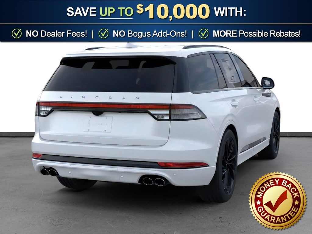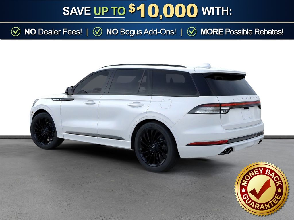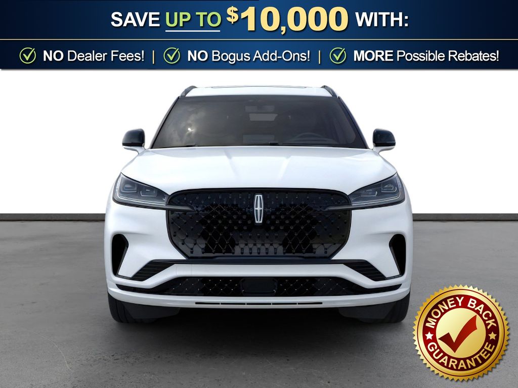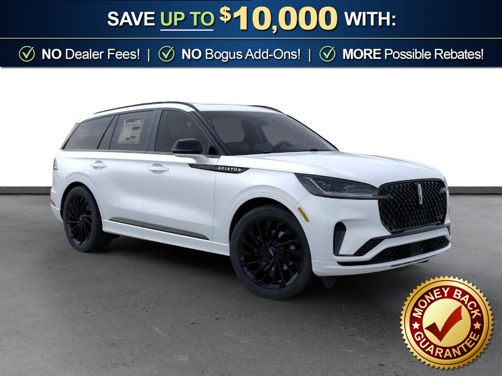 Dealer Discount of $3,275 off MSRP Pristine White Metallic Tri-Coat 2026 Lincoln Aviator Reserve NLT AWD 10-Speed Automatic 3.0L V6 14 Speakers, 3rd row seats: split-bench, 4-Wheel Disc Brakes, 40/Mini Console/40 Dual Captain's Chairs, ABS brakes, Adaptive suspension, Air Conditioning, Alloy wheels, AM/FM radio: SiriusXM, Apple CarPlay/Android Auto, Audio memory, Auto Heated and Ventilated Driver and Passenger Seats, Auto High-beam Headlights, Auto-dimming door mirrors, Auto-dimming Rear-View mirror, Automatic temperature control, Black Exterior Elements, Body-Color Exterior Elements, Brake assist, Bumpers: body-color, Compass, Delay-off headlights, Driver door bin, Driver vanity mirror, Dual front impact airbags, Dual front side impact airbags, Electronic Stability Control, Emergency communication system: 911 Assist, Four wheel independent suspension, Front anti-roll bar, Front Bucket Seats, Front Center Armrest, Front dual zone A/C, Front reading lights, Fully automatic headlights, Garage door transmitter, Genuine wood console insert, Genuine wood dashboard insert, Heads-Up Display, Heated door mirrors, Heated front seats, Heated steering wheel, HVAC memory, Illuminated entry, Jet Appearance Package, Knee airbag, Leather steering wheel, Lincoln App, Lincoln BlueCruise Equipped (4-Years Included), Lincoln Connectivity Package (4-Years), Lincoln Digital Experience, Low tire pressure warning, Memory seat, Navigation system: Google Maps, Occupant sensing airbag, Outside temperature display, Overhead airbag, Overhead console, Panic alarm, Passenger door bin, Passenger vanity mirror, Power door mirrors, Power driver seat, Power Liftgate, Power moonroof: Panoramic Vista Roof, Power passenger seat, Power steering, Power windows, Premium Leather Front Captain's Chairs, Radio data system, Radio: Revel Audio System with 14 Speakers, Rain sensing wipers, Rear air conditioning, Rear anti-roll bar, Rear audio controls, Rear dual zone A/C, Rear reading lights, Rear window defroster, Rear window wiper, Remote keyless entry, Security system, SiriusXM, Speed control, Speed-Sensitive Wipers, Split folding rear seat, Spoiler, Steering wheel memory, Steering wheel mounted A/C controls, Steering wheel mounted audio controls, Tachometer, Telescoping steering wheel, Tilt steering wheel, Traction control, Trip computer, Turn signal indicator mirrors, Variably intermittent wipers, Ventilated front seats, Wheels: 21" Bright-Machined Aluminum with Dark Alloy Painted Pockets, Wheels: 22" Black Aluminum, Wireless Charging Pad.
