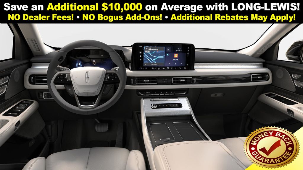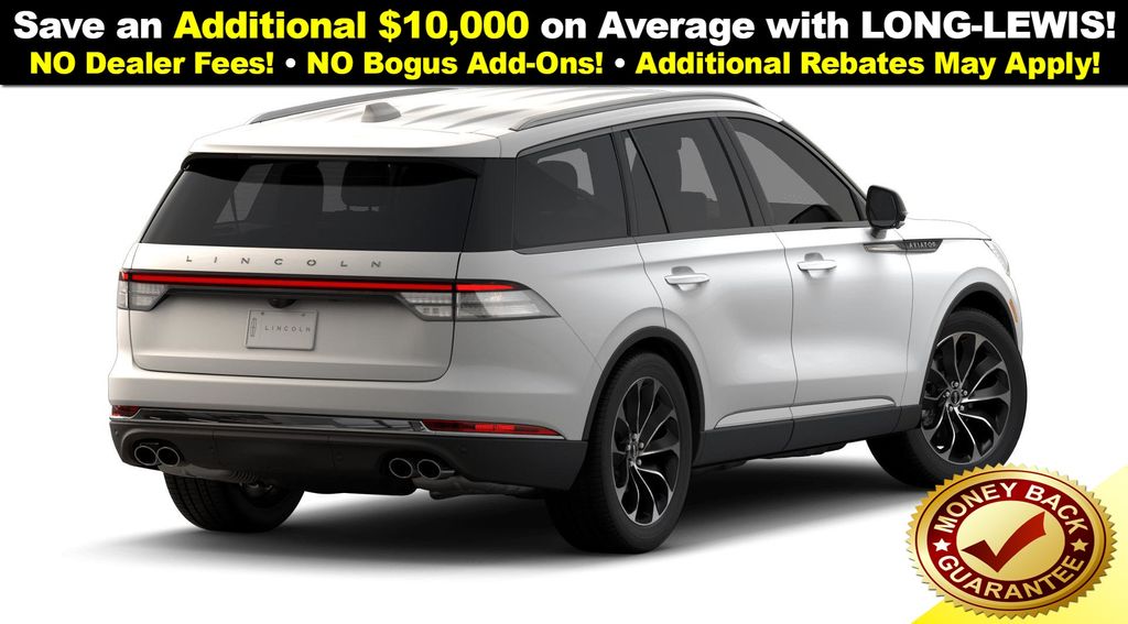 Pristine White Metallic Tri-Coat 2026 Lincoln Aviator Premiere NLT RWD 10-Speed Automatic 3.0L V6 10 Speakers, 3rd row seats: split-bench, 4-Wheel Disc Brakes, ABS brakes, Adaptive suspension, Air Conditioning, Alloy wheels, AM/FM radio: SiriusXM, Apple CarPlay/Android Auto, Audio memory, Auto High-beam Headlights, Auto-dimming door mirrors, Auto-dimming Rear-View mirror, Automatic temperature control, Brake assist, Bumpers: body-color, Compass, Delay-off headlights, Driver door bin, Driver vanity mirror, Dual front impact airbags, Dual front side impact airbags, Electronic Stability Control, Emergency communication system: 911 Assist, Exterior Parking Camera Rear, Four wheel independent suspension, Front anti-roll bar, Front Bucket Seats, Front Center Armrest, Front dual zone A/C, Front reading lights, Fully automatic headlights, Garage door transmitter, Heated door mirrors, Heated front seats, Heated steering wheel, HVAC memory, Illuminated entry, Knee airbag, Leather steering wheel, Lincoln BlueCruise Equipped (4-Years Included), Lincoln Connectivity Package (4-years included), Lincoln Digital Experience, Lincoln Soft Touch Heated Comfort Seats, Low tire pressure warning, Memory seat, Navigation System, Occupant sensing airbag, Outside temperature display, Overhead airbag, Overhead console, Panic alarm, Passenger door bin, Passenger vanity mirror, Power door mirrors, Power driver seat, Power Liftgate, Power passenger seat, Power steering, Power windows, Radio data system, Radio: Lincoln Premium AM/FM/HD Audio System, Rain sensing wipers, Rear air conditioning, Rear anti-roll bar, Rear audio controls, Rear reading lights, Rear window defroster, Rear window wiper, Remote keyless entry, Security system, SiriusXM, Speed control, Speed-Sensitive Wipers, Split folding rear seat, Spoiler, Steering wheel mounted A/C controls, Steering wheel mounted audio controls, Tachometer, Telescoping steering wheel, Tilt steering wheel, Traction control, Trip computer, Turn signal indicator mirrors, Variably intermittent wipers, Wheels: 20" Magnetic Bright-Machined Aluminum, Wheels: 21" Bright Machined Aluminum.