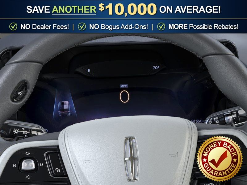 Lincoln Connectivity Package (4-Years), 10 Speakers, 3rd row seats: split-bench, 4-Wheel Disc Brakes, ABS brakes, Adaptive suspension, Air Conditioning, Alloy wheels, AM/FM radio: SiriusXM, Apple CarPlay/Android Auto, Audio memory, Auto High-beam Headlights, Auto-dimming door mirrors, Auto-dimming Rear-View mirror, Automatic temperature control, Brake assist, Bumpers: body-color, Compass, Delay-off headlights, Driver door bin, Driver vanity mirror, Dual front impact airbags, Dual front side impact airbags, Electronic Stability Control, Emergency communication system: 911 Assist, Four wheel independent suspension, Front anti-roll bar, Front Bucket Seats, Front Center Armrest, Front dual zone A/C, Front reading lights, Fully automatic headlights, Garage door transmitter, Heads-Up Display, Heated door mirrors, Heated Front Driver and Passenger Seats, Heated front seats, Heated steering wheel, HVAC memory, Illuminated entry, Knee airbag, Leather steering wheel, Lincoln App, Lincoln BlueCruise Equipped (4-Years Included), Lincoln Digital Experience, Low tire pressure warning, Memory seat, Navigation system: Google Maps, Occupant sensing airbag, Outside temperature display, Overhead airbag, Overhead console, Panic alarm, Passenger door bin, Passenger vanity mirror, Power door mirrors, Power driver seat, Power Liftgate, Power passenger seat, Power steering, Power windows, Radio data system, Radio: Lincoln Premium AM/FM/HD Audio System with 10 Speakers, Rain sensing wipers, Rear air conditioning, Rear anti-roll bar, Rear audio controls, Rear reading lights, Rear window defroster, Rear window wiper, Remote keyless entry, Security system, SiriusXM, Speed control, Speed-Sensitive Wipers, Split folding rear seat, Spoiler, Steering wheel mounted A/C controls, Steering wheel mounted audio controls, Tachometer, Telescoping steering wheel, Tilt steering wheel, Traction control, Trip computer, Turn signal indicator mirrors, Variably intermittent wipers, and Wheels: 20" Magnetic Bright-Machined Aluminum.