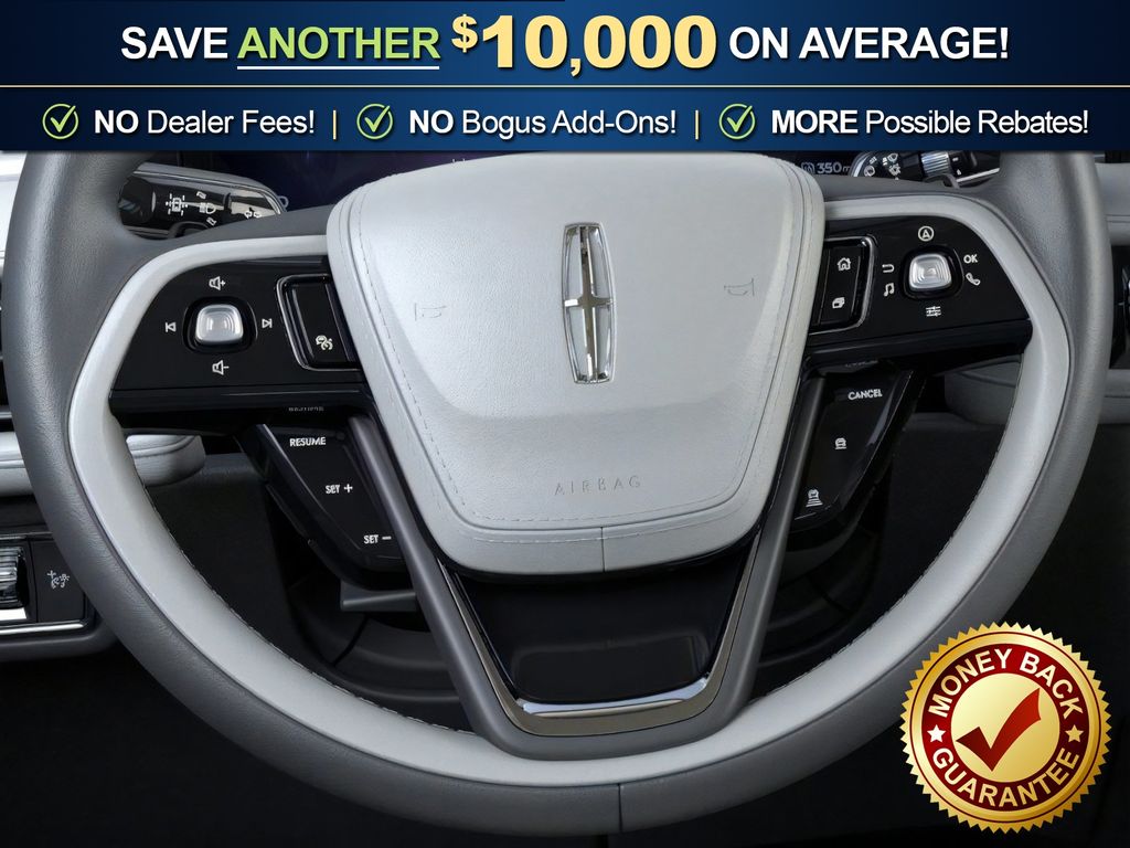 Lincoln Connectivity Package (4-Years), 10 Speakers, 3rd row seats: split-bench, 4-Wheel Disc Brakes, ABS brakes, Adaptive suspension, Air Conditioning, Alloy wheels, AM/FM radio: SiriusXM, Apple CarPlay/Android Auto, Audio memory, Auto High-beam Headlights, Auto-dimming door mirrors, Auto-dimming Rear-View mirror, Automatic temperature control, Brake assist, Bumpers: body-color, Compass, Delay-off headlights, Driver door bin, Driver vanity mirror, Dual front impact airbags, Dual front side impact airbags, Electronic Stability Control, Emergency communication system: 911 Assist, Four wheel independent suspension, Front anti-roll bar, Front Bucket Seats, Front Center Armrest, Front dual zone A/C, Front reading lights, Fully automatic headlights, Garage door transmitter, Heads-Up Display, Heated door mirrors, Heated Front Driver and Passenger Seats, Heated front seats, Heated steering wheel, HVAC memory, Illuminated entry, Knee airbag, Leather steering wheel, Lincoln App, Lincoln BlueCruise Equipped (4-Years Included), Lincoln Digital Experience, Low tire pressure warning, Memory seat, Navigation system: Google Maps, Occupant sensing airbag, Outside temperature display, Overhead airbag, Overhead console, Panic alarm, Passenger door bin, Passenger vanity mirror, Power door mirrors, Power driver seat, Power Liftgate, Power passenger seat, Power steering, Power windows, Radio data system, Radio: Lincoln Premium AM/FM/HD Audio System with 10 Speakers, Rain sensing wipers, Rear air conditioning, Rear anti-roll bar, Rear audio controls, Rear reading lights, Rear window defroster, Rear window wiper, Remote keyless entry, Security system, SiriusXM, Speed control, Speed-Sensitive Wipers, Split folding rear seat, Spoiler, Steering wheel mounted A/C controls, Steering wheel mounted audio controls, Tachometer, Telescoping steering wheel, Tilt steering wheel, Traction control, Trip computer, Turn signal indicator mirrors, Variably intermittent wipers, and Wheels: 20" Magnetic Bright-Machined Aluminum.
