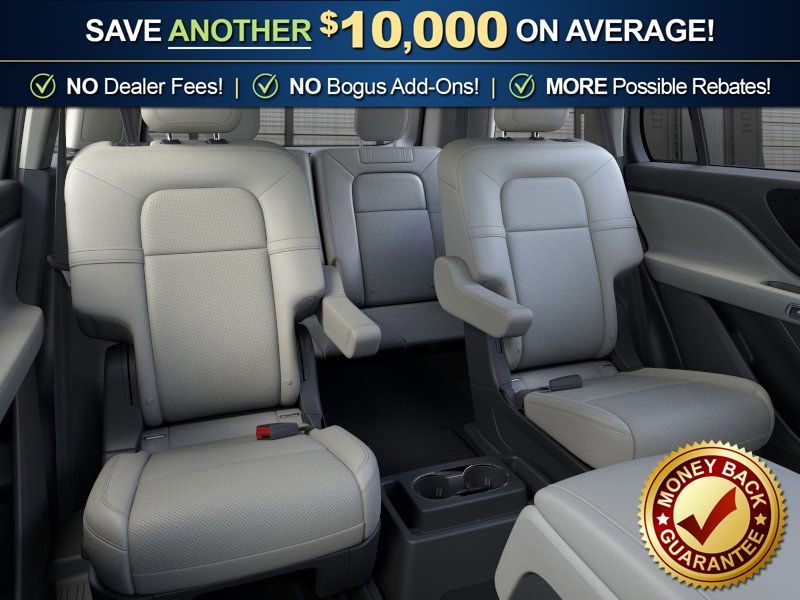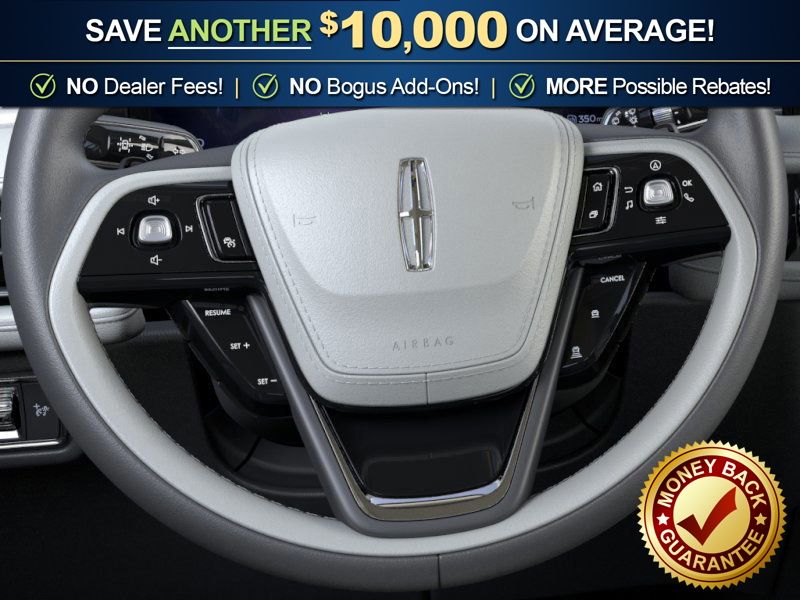 Lincoln Connectivity Package (4-Years), 10 Speakers, 3rd row seats: split-bench, 4-Wheel Disc Brakes, ABS brakes, Adaptive suspension, Air Conditioning, Alloy wheels, AM/FM radio: SiriusXM, Apple CarPlay/Android Auto, Audio memory, Auto High-beam Headlights, Auto-dimming door mirrors, Auto-dimming Rear-View mirror, Automatic temperature control, Brake assist, Bumpers: body-color, Compass, Delay-off headlights, Driver door bin, Driver vanity mirror, Dual front impact airbags, Dual front side impact airbags, Electronic Stability Control, Emergency communication system: 911 Assist, Four wheel independent suspension, Front anti-roll bar, Front Bucket Seats, Front Center Armrest, Front dual zone A/C, Front reading lights, Fully automatic headlights, Garage door transmitter, Heads-Up Display, Heated door mirrors, Heated Front Driver and Passenger Seats, Heated front seats, Heated steering wheel, HVAC memory, Illuminated entry, Knee airbag, Leather steering wheel, Lincoln App, Lincoln BlueCruise Equipped (4-Years Included), Lincoln Digital Experience, Low tire pressure warning, Memory seat, Navigation system: Google Maps, Occupant sensing airbag, Outside temperature display, Overhead airbag, Overhead console, Panic alarm, Passenger door bin, Passenger vanity mirror, Power door mirrors, Power driver seat, Power Liftgate, Power passenger seat, Power steering, Power windows, Radio data system, Radio: Lincoln Premium AM/FM/HD Audio System with 10 Speakers, Rain sensing wipers, Rear air conditioning, Rear anti-roll bar, Rear audio controls, Rear reading lights, Rear window defroster, Rear window wiper, Remote keyless entry, Security system, SiriusXM, Speed control, Speed-Sensitive Wipers, Split folding rear seat, Spoiler, Steering wheel mounted A/C controls, Steering wheel mounted audio controls, Tachometer, Telescoping steering wheel, Tilt steering wheel, Traction control, Trip computer, Turn signal indicator mirrors, Variably intermittent wipers, and Wheels: 20" Magnetic Bright-Machined Aluminum.