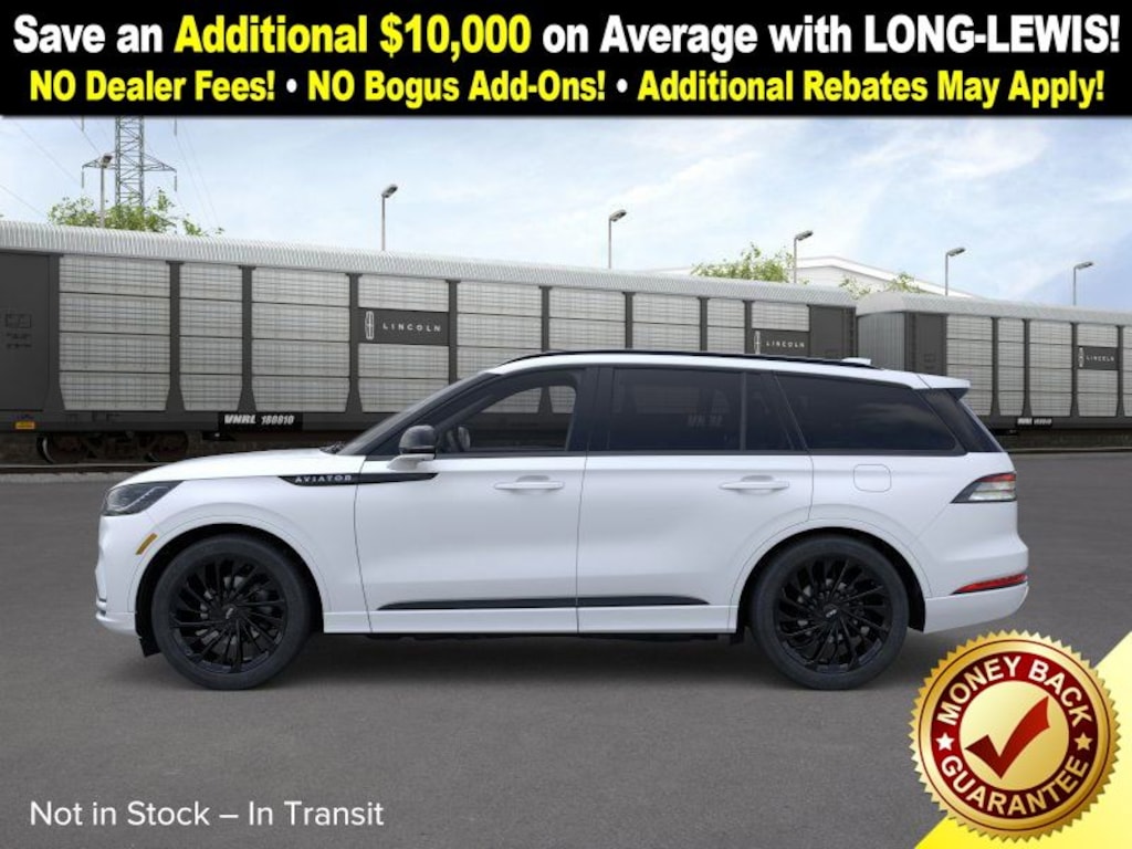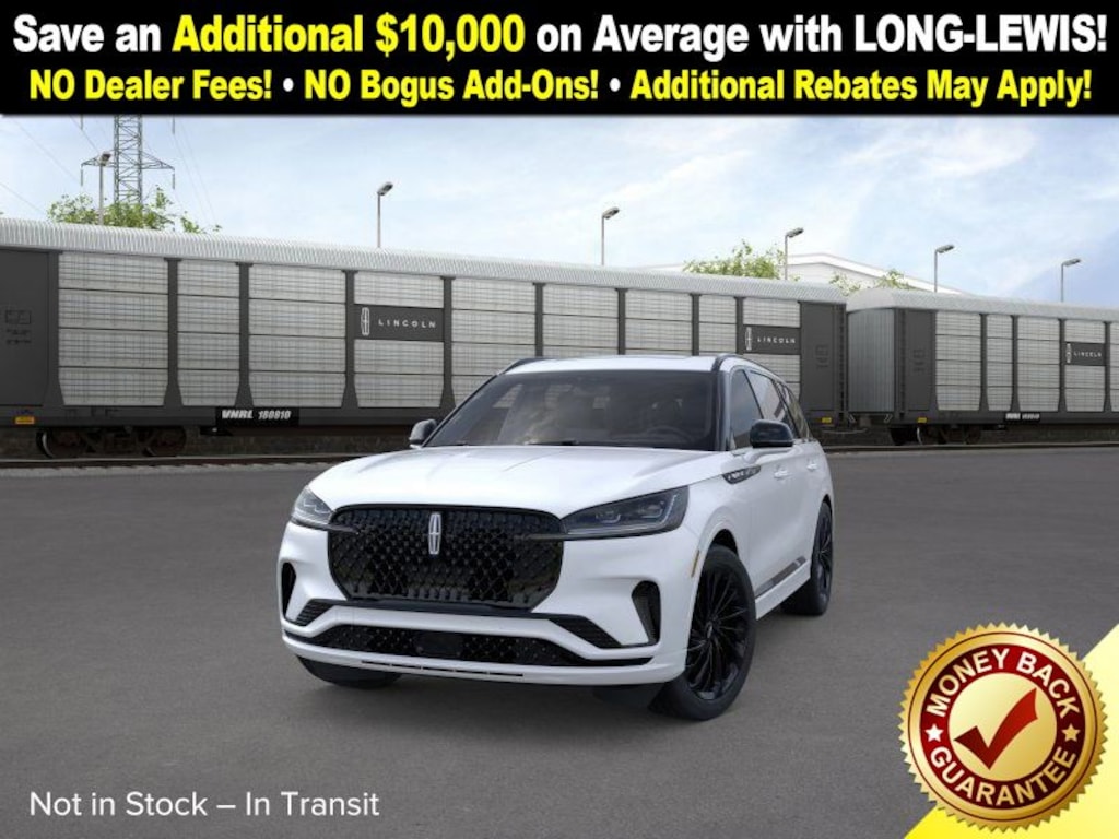 Pristine White Metallic Tri-Coat 2026 Lincoln Aviator Reserve NLT AWD 10-Speed Automatic 3.0L V6 14 Speakers, 3rd row seats: split-bench, 4-Wheel Disc Brakes, 40/Mini Console/40 Dual Captain's Chairs, ABS brakes, Adaptive suspension, Advanced Heads-Up Display, Air Conditioning, Air Glide Suspension w/Dynamic Lower Entry, Alloy wheels, AM/FM radio: SiriusXM, Apple CarPlay/Android Auto, Audio memory, Auto Air Refresh, Auto High-beam Headlights, Auto-dimming door mirrors, Auto-dimming Rear-View mirror, Automatic temperature control, Black Exterior Elements, Body-Color Exterior Elements, Brake assist, Bumpers: body-color, Compass, Delay-off headlights, Driver door bin, Driver vanity mirror, Dual front impact airbags, Dual front side impact airbags, Dynamic Handling Package, Electronic Stability Control, Emergency communication system: 911 Assist, Exterior Parking Camera Rear, Four wheel independent suspension, Front anti-roll bar, Front Bucket Seats, Front Center Armrest, Front dual zone A/C, Front reading lights, Full Rear Console, Fully automatic headlights, Garage door transmitter, Genuine wood console insert, Genuine wood dashboard insert, Heads-Up Display, Heated door mirrors, Heated front seats, Heated steering wheel, HVAC memory, Illuminated entry, Jet Appearance Package, Knee airbag, Leather steering wheel, Lincoln BlueCruise Equipped (4-Years Included), Lincoln Connectivity Package (4-years included), Lincoln Digital Experience, Low tire pressure warning, Memory seat, Navigation System, Occupant sensing airbag, Outside temperature display, Overhead airbag, Overhead console, Panic alarm, Passenger door bin, Passenger vanity mirror, Power door mirrors, Power driver seat, Power Liftgate, Power moonroof: Panoramic Vista Roof, Power passenger seat, Power steering, Power windows, Premium Lthr Heated/Ventilated Fnt Captain's Chairs, Radio data system, Radio: Revel Audio System w/14 Speakers, Rain sensing wipers, Rear air conditioning, Rear anti-roll bar, Rear audio controls, Rear dual zone A/C, Rear reading lights, Rear window defroster, Rear window wiper, Remote keyless entry, Security system, SiriusXM, Speed control, Speed-Sensitive Wipers, Split folding rear seat, Spoiler, Steering wheel memory, Steering wheel mounted A/C controls, Steering wheel mounted audio controls, Tachometer, Telescoping steering wheel, Tilt steering wheel, Traction control, Trip computer, Turn signal indicator mirrors, Variably intermittent wipers, Ventilated front seats, Wheels: 21" Bright-Machined Aluminum, Wheels: 22" Black Aluminum w/Adaptive Suspension, Wireless Charging Pad.