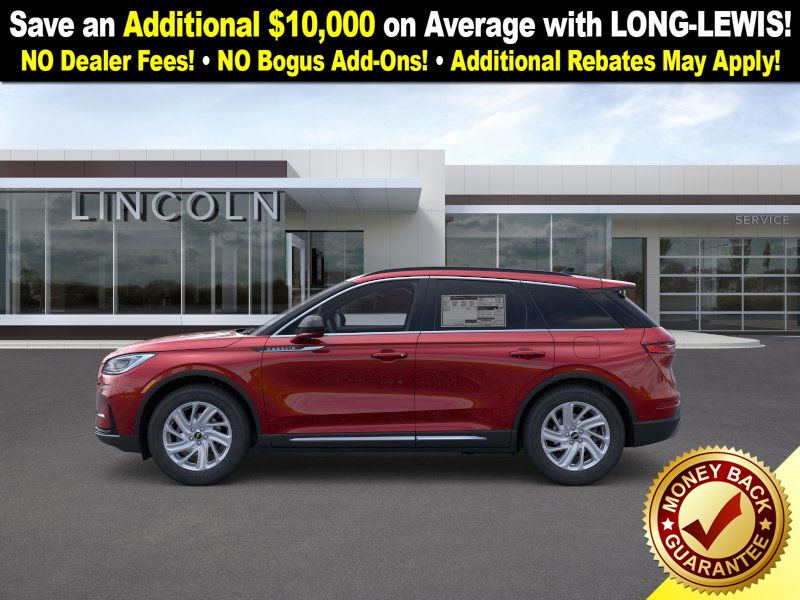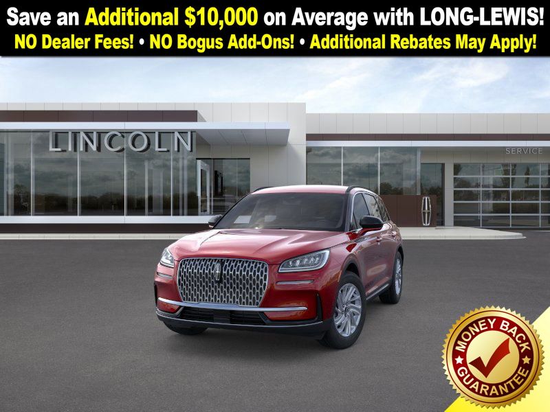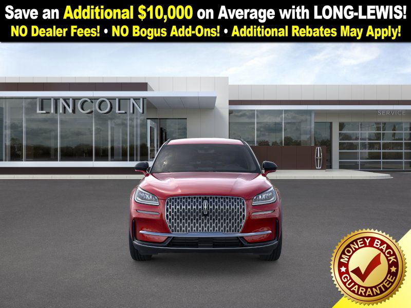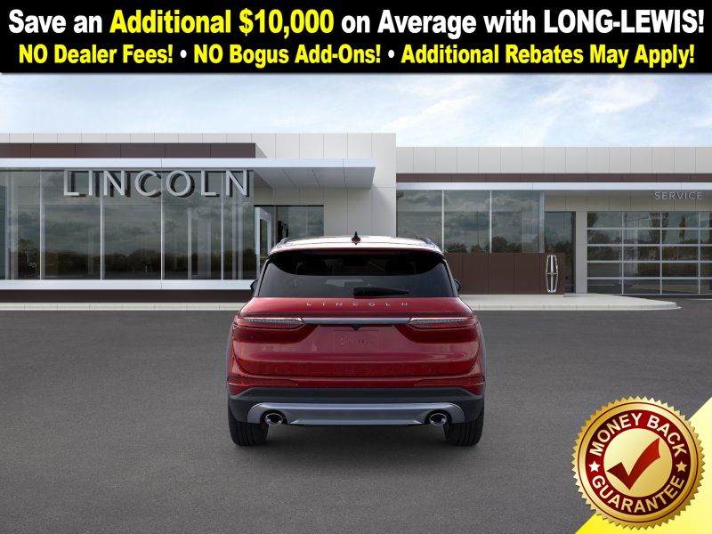 Red Carpet Metallic Tinted Clearcoat 2026 Lincoln Corsair Premiere NLT FWD 8-Speed Automatic 2.0L I4 4-Wheel Disc Brakes, 9 Speakers, ABS brakes, Air Conditioning, Alexa Built-In, Alloy wheels, AM/FM radio: SiriusXM with 360L, Apple CarPlay/Android Auto, Auto High-beam Headlights, Auto-dimming Rear-View mirror, Automatic temperature control, Brake assist, Bumpers: body-color, Compass, Delay-off headlights, Driver door bin, Driver vanity mirror, Dual front impact airbags, Dual front side impact airbags, Electronic Stability Control, Emergency communication system: 911 Assist, Exterior Parking Camera Rear, Four wheel independent suspension, Front anti-roll bar, Front Bucket Seats, Front Center Armrest, Front dual zone A/C, Front reading lights, Fully automatic headlights, Heated door mirrors, Heated front seats, Illuminated entry, Knee airbag, Leather steering wheel, Lincoln Soft Touch Heated Front Captain's Chairs, Low tire pressure warning, Memory seat, Navigation system: Connected Navigation (4-year trial), Occupant sensing airbag, Outside temperature display, Overhead airbag, Overhead console, Panic alarm, Passenger door bin, Passenger vanity mirror, Power door mirrors, Power driver seat, Power Liftgate, Power passenger seat, Power steering, Power windows, Radio data system, Radio: Lincoln Premium Audio System w/MP3, Rear anti-roll bar, Rear Parking Sensors, Rear reading lights, Rear seat center armrest, Rear window defroster, Rear window wiper, Remote keyless entry, Security system, SiriusXM w/360L Radio, Speed control, Speed-sensing steering, Speed-Sensitive Wipers, Split folding rear seat, Spoiler, Steering wheel mounted A/C controls, Steering wheel mounted audio controls, SYNC 4, Tachometer, Telescoping steering wheel, Tilt steering wheel, Traction control, Trip computer, Variably intermittent wipers, Wheels: 18" Warm Painted Alloy.