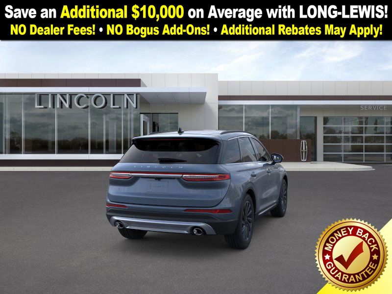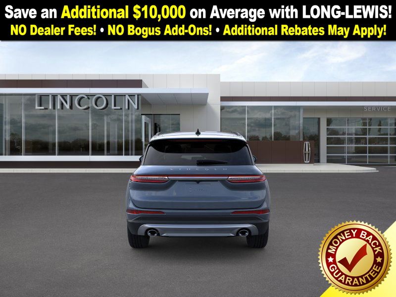 Whisper Blue Metallic Clearcoat 2026 Lincoln Corsair Reserve NLT FWD 8-Speed Automatic 2.0L I4 19" Bright Machined Aluminum Wheels, 4-Wheel Disc Brakes, 9 Speakers, ABS brakes, Air Conditioning, Alexa Built-In, Alloy wheels, AM/FM radio: SiriusXM with 360L, Apple CarPlay/Android Auto, Auto High-beam Headlights, Auto-dimming Rear-View mirror, Automatic temperature control, Brake assist, Bumpers: body-color, Compass, Delay-off headlights, Driver door bin, Driver vanity mirror, Dual front impact airbags, Dual front side impact airbags, Electronic Stability Control, Emergency communication system: 911 Assist, Exterior Parking Camera Rear, Four wheel independent suspension, Front anti-roll bar, Front Bucket Seats, Front Center Armrest, Front dual zone A/C, Front reading lights, Fully automatic headlights, Heated door mirrors, Heated front seats, Illuminated entry, Knee airbag, Leather steering wheel, Low tire pressure warning, Memory seat, Navigation system: Connected Navigation (4-year trial), Occupant sensing airbag, Outside temperature display, Overhead airbag, Overhead console, Panic alarm, Passenger door bin, Passenger vanity mirror, Power door mirrors, Power driver seat, Power Liftgate, Power passenger seat, Power steering, Power windows, Premium Leather-Trimmed Heated Captain's Chairs, Radio data system, Radio: Lincoln Premium Audio System w/MP3, Rear anti-roll bar, Rear Parking Sensors, Rear reading lights, Rear seat center armrest, Rear window defroster, Rear window wiper, Remote keyless entry, Security system, SiriusXM w/360L Radio, Speed control, Speed-sensing steering, Speed-Sensitive Wipers, Split folding rear seat, Spoiler, Steering wheel mounted A/C controls, Steering wheel mounted audio controls, SYNC 4, Tachometer, Telescoping steering wheel, Tilt steering wheel, Traction control, Trip computer, Variably intermittent wipers.