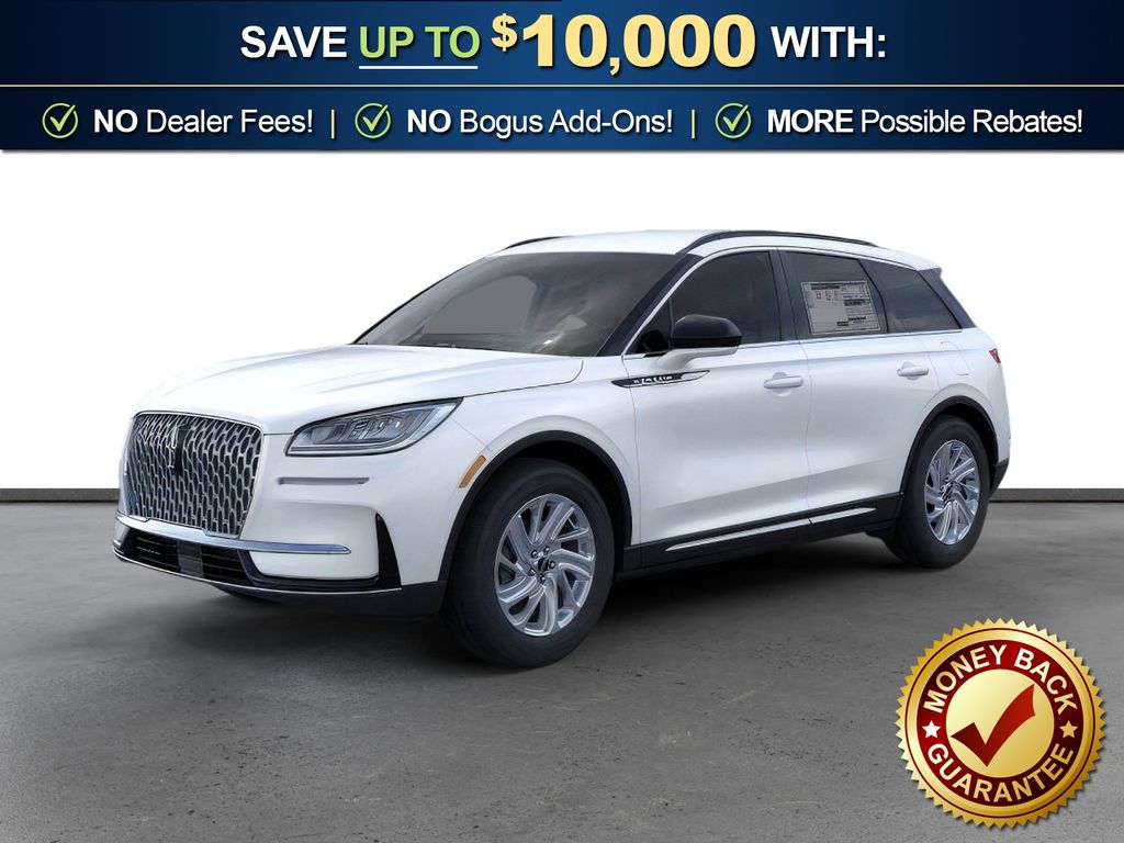 Pristine White Metallic Tri-Coat 2026 Lincoln Corsair Premiere FCT FWD 8-Speed Automatic 2.0L I4 4-Wheel Disc Brakes, 9 Speakers, ABS brakes, Air Conditioning, Alexa Built-In, Alloy wheels, AM/FM radio: SiriusXM with 360L, Apple CarPlay/Android Auto, Auto High-beam Headlights, Auto-dimming Rear-View mirror, Automatic temperature control, Brake assist, Bumpers: body-color, Compass, Delay-off headlights, Driver door bin, Driver vanity mirror, Dual front impact airbags, Dual front side impact airbags, Electronic Stability Control, Emergency communication system: 911 Assist, Equipment Group 100A Premiere I, Four wheel independent suspension, Front anti-roll bar, Front Bucket Seats, Front Center Armrest, Front dual zone A/C, Front reading lights, Fully automatic headlights, Heated door mirrors, Heated Front Seats, Heated front seats, Illuminated entry, Knee airbag, Leather steering wheel, Lincoln Soft Touch Front Captain's Chairs, Low tire pressure warning, Memory seat, Navigation system: Connected Navigation (4-year trial), Occupant sensing airbag, Outside temperature display, Overhead airbag, Overhead console, Panic alarm, Passenger door bin, Passenger vanity mirror, Power door mirrors, Power driver seat, Power Liftgate, Power passenger seat, Power steering, Power windows, Radio data system, Radio: Lincoln Premium Audio System, Rear anti-roll bar, Rear Parking Sensors, Rear reading lights, Rear seat center armrest, Rear window defroster, Rear window wiper, Remote keyless entry, Security system, SiriusXM with 360L, Speed control, Speed-sensing steering, Speed-Sensitive Wipers, Split folding rear seat, Spoiler, Steering wheel mounted A/C controls, Steering wheel mounted audio controls, SYNC 4, Tachometer, Telescoping steering wheel, Tilt steering wheel, Traction control, Trip computer, Variably intermittent wipers, Voice-Activated Connected Navigation - 4 Year Included Duration, Wheels: 18" Warm Alloy-Painted.