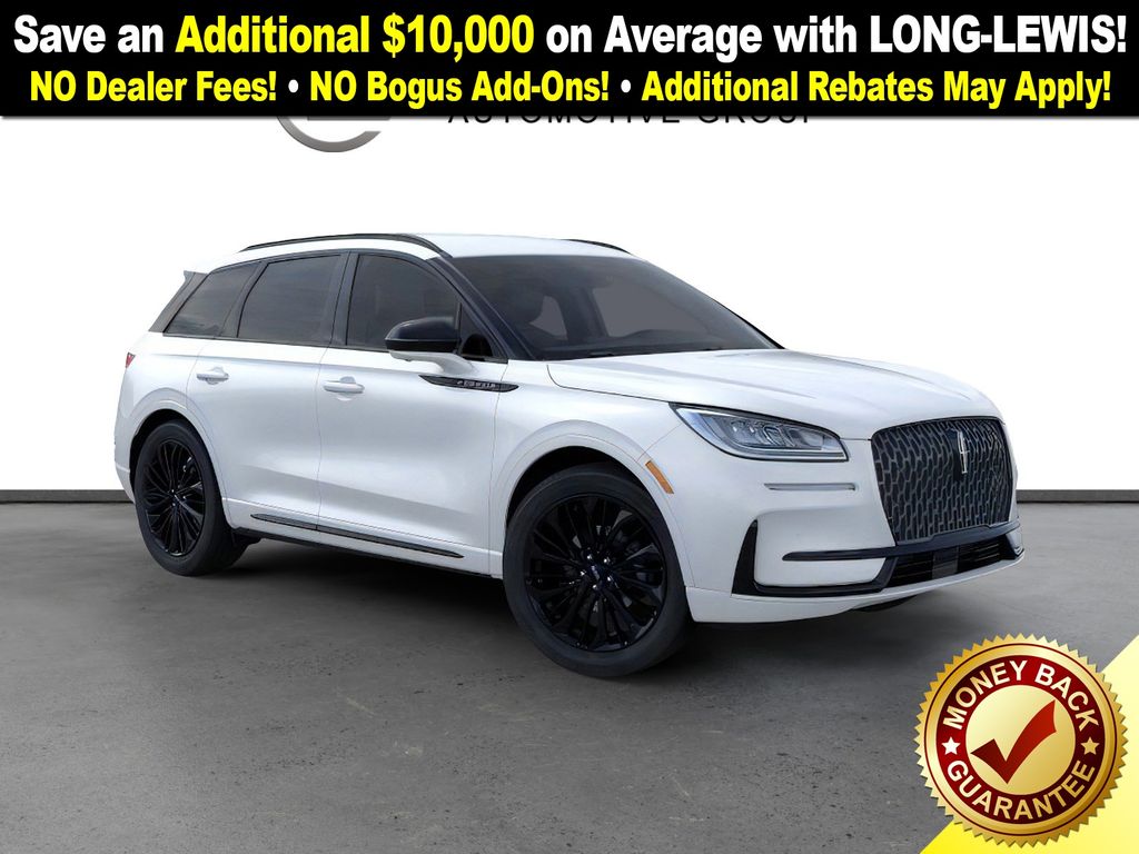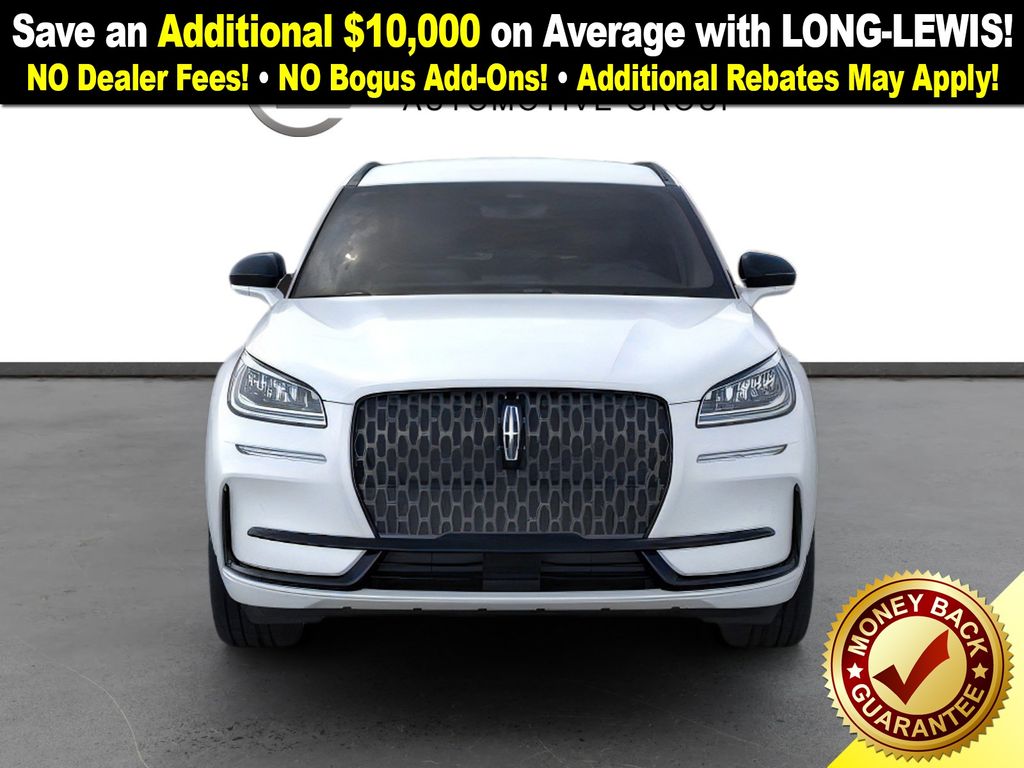 Pristine White Metallic Tri-Coat 2026 Lincoln Corsair Premiere NLT FWD 8-Speed Automatic 2.0L I4 4-Wheel Disc Brakes, 9 Speakers, ABS brakes, Air Conditioning, Alexa Built-In, Alloy wheels, AM/FM radio: SiriusXM with 360L, Apple CarPlay/Android Auto, Auto High-beam Headlights, Auto-dimming Rear-View mirror, Automatic temperature control, Body-Color Exterior Elements, Brake assist, Bumpers: body-color, Compass, Delay-off headlights, Driver door bin, Driver vanity mirror, Dual front impact airbags, Dual front side impact airbags, Electronic Stability Control, Emergency communication system: 911 Assist, Exterior Parking Camera Rear, Four wheel independent suspension, Front anti-roll bar, Front Bucket Seats, Front Center Armrest, Front dual zone A/C, Front reading lights, Fully automatic headlights, Heated door mirrors, Heated front seats, Illuminated entry, Jet Appearance Package, Knee airbag, Leather steering wheel, Lincoln Soft Touch Heated Front Captain's Chairs, Low tire pressure warning, Memory seat, Micro-Perf Lincoln Soft Touch Captain's Chairs, Navigation system: Connected Navigation (4-year trial), Occupant sensing airbag, Outside temperature display, Overhead airbag, Overhead console, Panic alarm, Passenger door bin, Passenger vanity mirror, Pillar Black Exterior Elements, Power door mirrors, Power driver seat, Power Liftgate, Power passenger seat, Power steering, Power windows, Radio data system, Radio: Lincoln Premium Audio System w/MP3, Rear anti-roll bar, Rear Parking Sensors, Rear reading lights, Rear seat center armrest, Rear window defroster, Rear window wiper, Remote keyless entry, Security system, SiriusXM w/360L Radio, Speed control, Speed-sensing steering, Speed-Sensitive Wipers, Split folding rear seat, Spoiler, Steering wheel mounted A/C controls, Steering wheel mounted audio controls, SYNC 4, Tachometer, Telescoping steering wheel, Tilt steering wheel, Traction control, Trip computer, Variably intermittent wipers, Wheels: 18" Warm Painted Alloy, Wheels: 20" Black Aluminum.