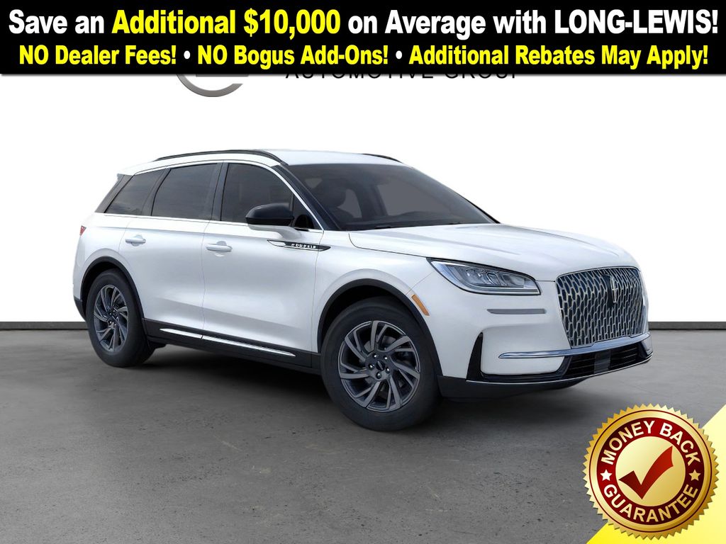 Pristine White Metallic Tri-Coat 2026 Lincoln Corsair Premiere NLT FWD 8-Speed Automatic 2.0L I4 18" Bright Machined Aluminum Wheels, 4-Wheel Disc Brakes, 9 Speakers, ABS brakes, Air Conditioning, Alexa Built-In, Alloy wheels, AM/FM radio: SiriusXM with 360L, Apple CarPlay/Android Auto, Auto High-beam Headlights, Auto-dimming Rear-View mirror, Automatic temperature control, Brake assist, Bumpers: body-color, Compass, Delay-off headlights, Driver door bin, Driver vanity mirror, Dual front impact airbags, Dual front side impact airbags, Electronic Stability Control, Emergency communication system: 911 Assist, Exterior Parking Camera Rear, Four wheel independent suspension, Front anti-roll bar, Front Bucket Seats, Front Center Armrest, Front dual zone A/C, Front reading lights, Fully automatic headlights, Heated door mirrors, Heated front seats, Illuminated entry, Knee airbag, Leather steering wheel, Lincoln Soft Touch Heated Front Captain's Chairs, Low tire pressure warning, Memory seat, Navigation system: Connected Navigation (4-year trial), Occupant sensing airbag, Outside temperature display, Overhead airbag, Overhead console, Panic alarm, Passenger door bin, Passenger vanity mirror, Power door mirrors, Power driver seat, Power Liftgate, Power passenger seat, Power steering, Power windows, Radio data system, Radio: Lincoln Premium Audio System w/MP3, Rear anti-roll bar, Rear Parking Sensors, Rear reading lights, Rear seat center armrest, Rear window defroster, Rear window wiper, Remote keyless entry, Security system, SiriusXM w/360L Radio, Speed control, Speed-sensing steering, Speed-Sensitive Wipers, Split folding rear seat, Spoiler, Steering wheel mounted A/C controls, Steering wheel mounted audio controls, SYNC 4, Tachometer, Telescoping steering wheel, Tilt steering wheel, Traction control, Trip computer, Variably intermittent wipers, Wheels: 18" Warm Painted Alloy.