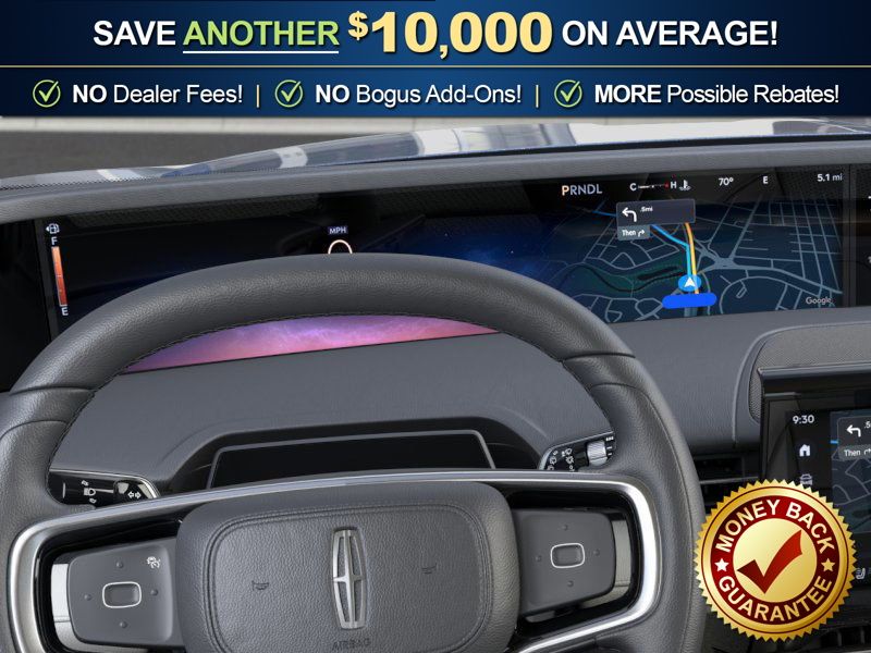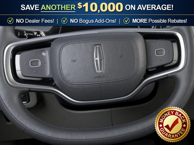 Equipment Group 202A Reserve II (110V Power Converter, Auto Air Refresh, BlueCruise Equipped (4-Years Included), Digital Scent, Hands-Free Power Liftgate, Lincoln Digital Experience, Panoramic Vista Roof with Powershade, Premium Leather Trimmed Captain's Chairs, Radio: AM/FM Revel Audio System, Rear Heated Seats with Switch Control, and SiriusXM with 360L), Lincoln Connectivity Package, 10 Speakers, 4-Wheel Disc Brakes, ABS brakes, Adaptive suspension, Air Conditioning, Alloy wheels, AM/FM radio: SiriusXM with 360L, Apple CarPlay/Android Auto, Auto High-beam Headlights, Auto tilt-away steering wheel, Auto-dimming Rear-View mirror, Automatic temperature control, Brake assist, Bumpers: body-color, Compass, Delay-off headlights, Driver door bin, Driver vanity mirror, Dual front impact airbags, Dual front side impact airbags, Electronic Stability Control, Emergency communication system: 911 Assist, Exterior Parking Camera Rear, Four wheel independent suspension, Front anti-roll bar, Front Bucket Seats, Front Center Armrest w/Storage, Front dual zone A/C, Front reading lights, Fully automatic headlights, Garage door transmitter, Heated door mirrors, Heated front seats, Heated steering wheel, Illuminated entry, Knee airbag, Leather steering wheel, Low tire pressure warning, Memory seat, Navigation System, Occupant sensing airbag, Outside temperature display, Overhead airbag, Overhead console, Panic alarm, Passenger door bin, Passenger vanity mirror, Power door mirrors, Power driver seat, Power Liftgate, Power passenger seat, Power steering, Power windows, Radio data system, Rain sensing wipers, Rear anti-roll bar, Rear reading lights, Rear seat center armrest, Rear window defroster, Rear window wiper, Remote keyless entry, Security system, SiriusXM with 360L (4 Year Plan), Speed control, Speed-sensing steering, Speed-Sensitive Wipers, Split folding rear seat, Spoiler, Steering wheel memory, Steering wheel mounted audio controls, Tachometer, Telescoping steering wheel, Tilt steering wheel, Traction control, Trip computer, Turn signal indicator mirrors, Variably intermittent wipers, and Ventilated front seats. Price includes: $4000 - Retail Customer Cash. Exp. 03/31/2026