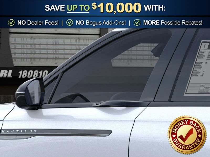 White Platinum Metallic Tri-Coat 2026 Lincoln Nautilus Premiere NLT AWD 8-Speed Automatic 2.0L GTDi 10 Speakers, 19" Bright Machined Aluminum Wheels, 4-Wheel Disc Brakes, ABS brakes, Air Conditioning, Alloy wheels, AM/FM radio: SiriusXM with 360L, Apple CarPlay/Android Auto, Auto High-beam Headlights, Auto tilt-away steering wheel, Auto-dimming Rear-View mirror, Automatic temperature control, Black Exterior Elements, BlueCruise Equipped (4-Years Included), Body-Color Exterior Elements, Brake assist, Bumpers: body-color, Compass, Delay-off headlights, Driver door bin, Driver vanity mirror, Dual front impact airbags, Dual front side impact airbags, Electronic Stability Control, Emergency communication system: 911 Assist, Exterior Parking Camera Rear, Four wheel independent suspension, Front anti-roll bar, Front Bucket Seats, Front Center Armrest w/Storage, Front dual zone A/C, Front reading lights, Fully automatic headlights, Garage door transmitter, Heated door mirrors, Heated front seats, Heated steering wheel, Illuminated entry, Jet Appearance Package, Knee airbag, Leather steering wheel, Lincoln App, Lincoln Connectivity Package, Lincoln Digital Experience, Lincoln Soft Touch Heated Front Captain's Chairs, Low tire pressure warning, Memory seat, Molded in Color - Lower Cladding and Wheel Arches, Navigation System, Occupant sensing airbag, Outside temperature display, Overhead airbag, Overhead console, Panic alarm, Passenger door bin, Passenger vanity mirror, Power door mirrors, Power driver seat, Power Liftgate, Power passenger seat, Power steering, Power windows, Radio data system, Radio: AM/FM Premium Audio, Rain sensing wipers, Rear anti-roll bar, Rear reading lights, Rear seat center armrest, Rear window defroster, Rear window wiper, Remote keyless entry, Security system, SiriusXM with 360L, Speed control, Speed-sensing steering, Speed-Sensitive Wipers, Split folding rear seat, Spoiler, Steering wheel memory, Steering wheel mounted audio controls, Tachometer, Telescoping steering wheel, Tilt steering wheel, Traction control, Trip computer, Turn signal indicator mirrors, Variably intermittent wipers, Wheels: 20" Bright Machined Aluminum.