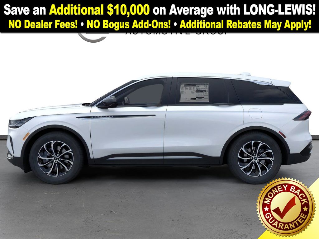 White Platinum Metallic Tri-Coat 2026 Lincoln Nautilus Premiere NLT AWD 8-Speed Automatic 2.0L GTDi 10 Speakers, 19" Bright Machined Aluminum Wheels, 4-Wheel Disc Brakes, ABS brakes, Air Conditioning, Alloy wheels, AM/FM radio: SiriusXM with 360L, Apple CarPlay/Android Auto, Auto High-beam Headlights, Auto tilt-away steering wheel, Auto-dimming Rear-View mirror, Automatic temperature control, BlueCruise Equipped (4-Years Included), Brake assist, Bumpers: body-color, Compass, Delay-off headlights, Driver door bin, Driver vanity mirror, Dual front impact airbags, Dual front side impact airbags, Electronic Stability Control, Emergency communication system: 911 Assist, Exterior Parking Camera Rear, Four wheel independent suspension, Front anti-roll bar, Front Bucket Seats, Front Center Armrest w/Storage, Front dual zone A/C, Front reading lights, Fully automatic headlights, Garage door transmitter, Heated door mirrors, Heated front seats, Heated steering wheel, Illuminated entry, Knee airbag, Leather steering wheel, Lincoln Connectivity Package, Lincoln Digital Experience, Lincoln Soft Touch Heated Front Captain's Chairs, Low tire pressure warning, Memory seat, Navigation System, Occupant sensing airbag, Outside temperature display, Overhead airbag, Overhead console, Panic alarm, Passenger door bin, Passenger vanity mirror, Power door mirrors, Power driver seat, Power Liftgate, Power passenger seat, Power steering, Power windows, Radio data system, Radio: AM/FM Premium Audio, Rain sensing wipers, Rear anti-roll bar, Rear reading lights, Rear seat center armrest, Rear window defroster, Rear window wiper, Remote keyless entry, Security system, SiriusXM with 360L, SiriusXM with 360L (4 Year Plan), Speed control, Speed-sensing steering, Speed-Sensitive Wipers, Split folding rear seat, Spoiler, Steering wheel memory, Steering wheel mounted audio controls, Tachometer, Telescoping steering wheel, Tilt steering wheel, Traction control, Trip computer, Turn signal indicator mirrors, Variably intermittent wipers.