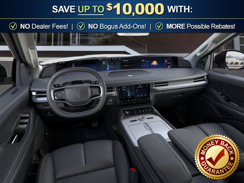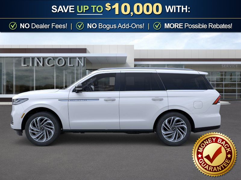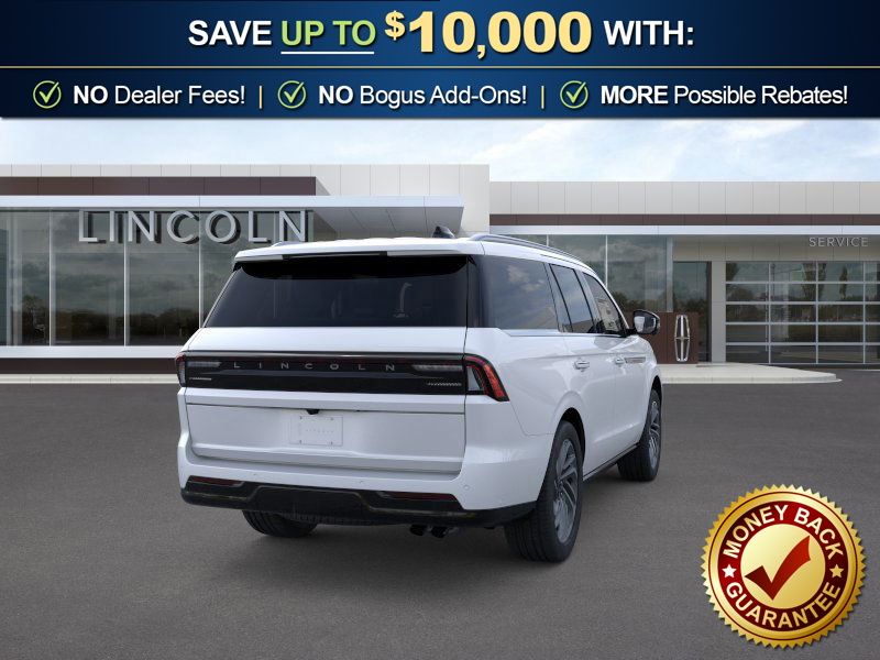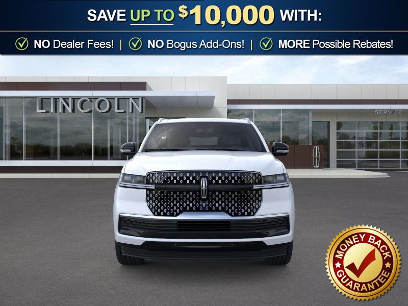Crystal White Metallic Clearcoat 2026 Lincoln Navigator Reserve FCT 4WD 10-Speed Automatic 3.5L V6 4WD, Lthr Seating Surf Blk Ony Leather, 26mm Engine Radiator, 28 Speakers, 2nd Row Heated & Ventilated Dual Captain's Chair, 3rd row seats: split-bench, 4-Wheel Disc Brakes, ABS brakes, Adaptive suspension, Air Conditioning, Alloy wheels, AM/FM radio: SiriusXM with 360L, Apple CarPlay/Android Auto, Audio memory, Auto Heated/Ventilated Premium Leather Captain's Chairs, Auto High-beam Headlights, Auto Start-Stop Technology, Auto tilt-away steering wheel, Auto-dimming door mirrors, Auto-dimming Rear-View mirror, Auto-leveling suspension, Automatic temperature control, BlueCruise Equipped (4-Years Included), Brake assist, Bumpers: body-color, Compass, Delay-off headlights, Driver door bin, Driver vanity mirror, Driver's Seat Mounted Armrest, Dual front impact airbags, Dual front side impact airbags, Electronic Stability Control, Emergency communication system: 911 Assist, Exterior Parking Camera Rear, Four wheel independent suspension, Front anti-roll bar, Front Bucket Seats, Front dual zone A/C, Front reading lights, Fully automatic headlights, Garage door transmitter, Heated door mirrors, Heated front seats, Heated rear seats, Heated steering wheel, Heavy-Duty Trailer Tow Package, HVAC memory, Illuminated entry, Leather steering wheel, Lincoln App, Lincoln Connectivity Package (4-Years Included), Lincoln Digital Experience, Lincoln Security Package, Low tire pressure warning, Memory seat, Navigation system: Connected Navigation (1-year trial), Occupant sensing airbag, Outside temperature display, Overhead airbag, Overhead console, Panic alarm, Passenger door bin, Passenger seat mounted armrest, Passenger vanity mirror, Power adjustable rear head restraints, Power door mirrors, Power driver seat, Power moonroof: Panoramic Vista Roof, Power passenger seat, Power steering, Power windows, Radio data system, Radio: Revel Ultima 3D Audio System, Rain sensing wipers, Rear air conditioning, Rear anti-roll bar, Rear audio controls, Rear reading lights, Rear window defroster, Rear window wiper, Reclining 3rd row seat, Remote keyless entry, Security system, SiriusXM with 360L (3 Months Trial), Speed control, Speed-sensing steering, Speed-Sensitive Wipers, Split folding rear seat, Spoiler, Steering wheel memory, Steering wheel mounted audio controls, Tachometer, Telescoping steering wheel, Tilt steering wheel, Traction control, Trailer Brake Controller, Trip computer, Turn signal indicator mirrors, Variably intermittent wipers, Ventilated front seats, Wheels: 22" Dark Tarnished Aluminum, 4WD, Lthr Seating Surf Blk Ony Leather.