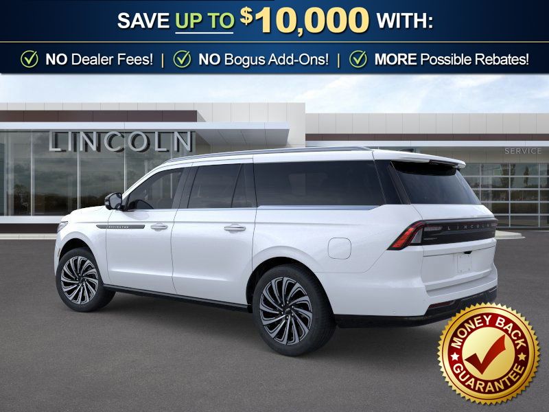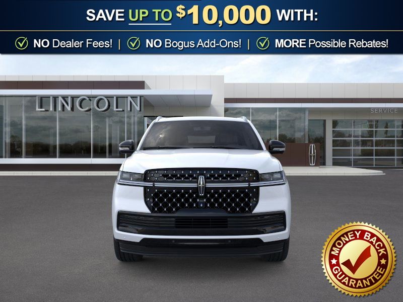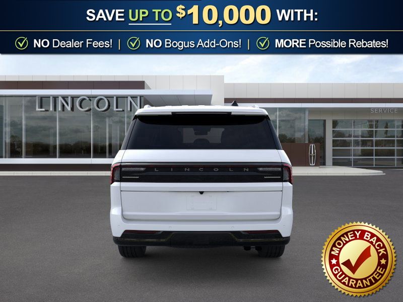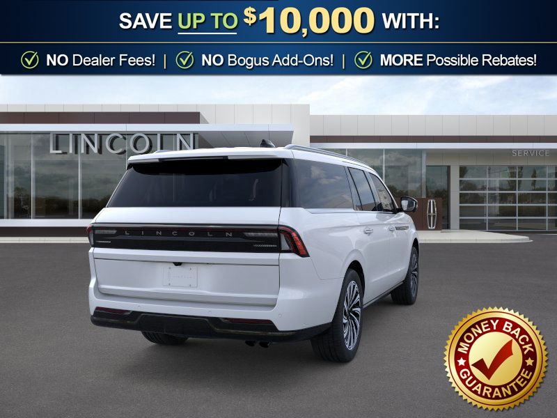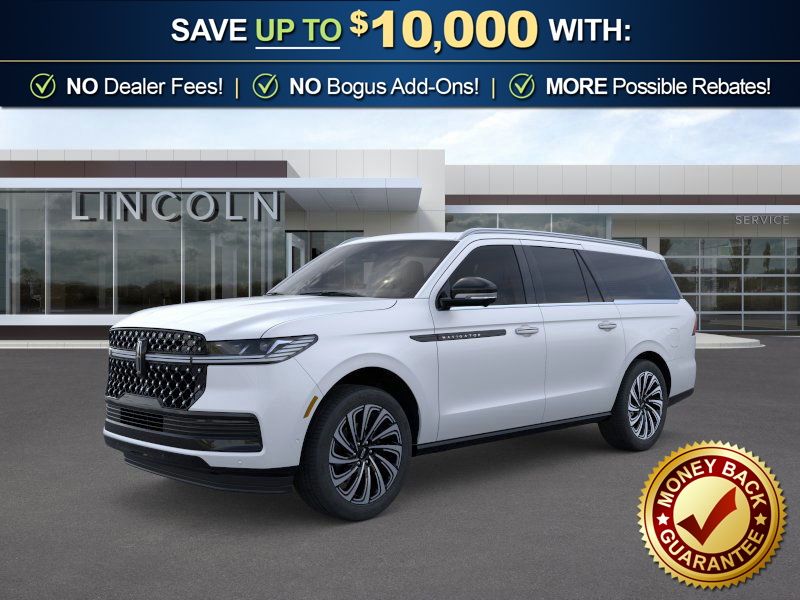 Crystal White Metallic Clearcoat 2026 Lincoln Navigator L Black Label NLT 4WD 10-Speed Automatic 3.5L V6 28 Speakers, 3rd row seats: split-bench, 4-Wheel Disc Brakes, ABS brakes, Adaptive suspension, Adjustable pedals, Air Conditioning, Alloy wheels, AM/FM radio: SiriusXM with 360L, Apple CarPlay/Android Auto, Audio memory, Auto High-beam Headlights, Auto Start-Stop Technology, Auto tilt-away steering wheel, Auto-dimming door mirrors, Auto-dimming Rear-View mirror, Auto-leveling suspension, Automatic temperature control, BlueCruise Equipped (4-Years Included), Brake assist, Bumpers: body-color, Compass, Delay-off headlights, Driver door bin, Driver vanity mirror, Driver's Seat Mounted Armrest, Dual front impact airbags, Dual front side impact airbags, Electronic Stability Control, Emergency communication system: 911 Assist, Enlighten Theme, Exterior Parking Camera Rear, Four wheel independent suspension, Front anti-roll bar, Front Bucket Seats, Front dual zone A/C, Front reading lights, Fully automatic headlights, Garage door transmitter, Head restraints memory, Heated door mirrors, Heated front seats, Heated rear seats, Heated steering wheel, HVAC memory, Illuminated entry, Leather steering wheel, Lincoln App, Lincoln Connectivity Package (4-Years Included), Lincoln Digital Experience, Lincoln Security Package, Low tire pressure warning, Memory seat, Navigation system: Connected Navigation (1-year trial), Occupant sensing airbag, Outside temperature display, Overhead airbag, Overhead console, Panic alarm, Passenger door bin, Passenger seat mounted armrest, Passenger vanity mirror, Pedal memory, Power adjustable front head restraints, Power adjustable rear head restraints, Power door mirrors, Power driver seat, Power moonroof: Panoramic Vista Roof, Power passenger seat, Power steering, Power windows, Radio data system, Radio: Revel Ultima 3D Audio System, Rain sensing wipers, Rear air conditioning, Rear anti-roll bar, Rear audio controls, Rear reading lights, Rear seat center armrest, Rear window defroster, Rear window wiper, Reclining 3rd row seat, Remote keyless entry, Security system, SiriusXM with 360L (3 Months Trial), Speed control, Speed-sensing steering, Speed-Sensitive Wipers, Split folding rear seat, Spoiler, Steering wheel memory, Steering wheel mounted audio controls, Tachometer, Telescoping steering wheel, Tilt steering wheel, Traction control, Trip computer, Turn signal indicator mirrors, Variably intermittent wipers, Ventilated front seats, Ventilated rear seats, Wheels: 22" High-Gloss Ebony Aluminum.