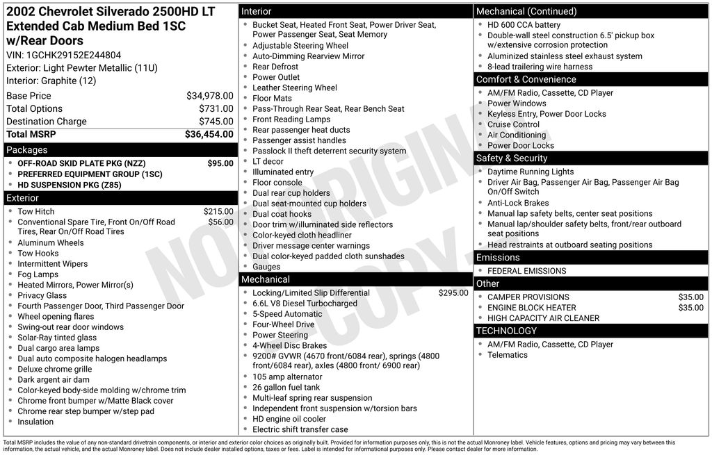 2002 Chevrolet Silverado 2500HD LT Truck Duramax V8 Turbodiesel