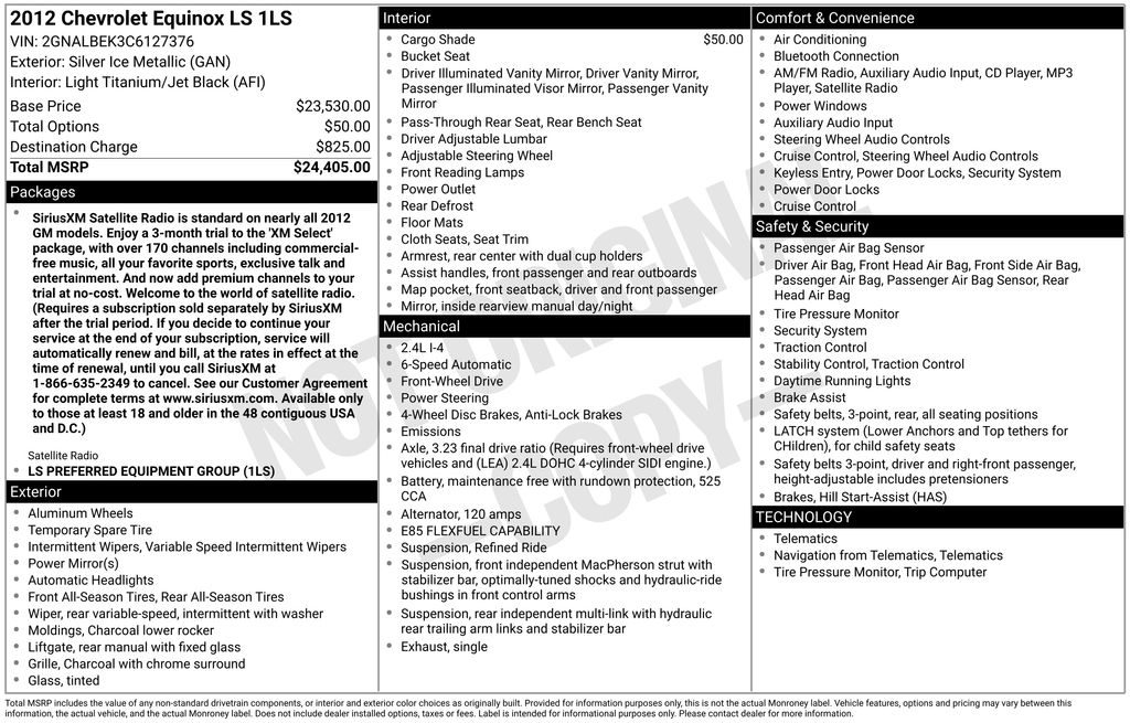 2012 Chevrolet Equinox LS FWD 6-Speed Automatic with Overdrive 2.4L 4-Cylinder SIDI DOHC Silver Ice Metallic