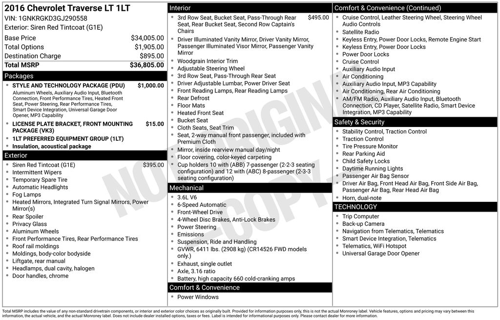2016 Chevrolet Traverse LT SUV V6 SIDI