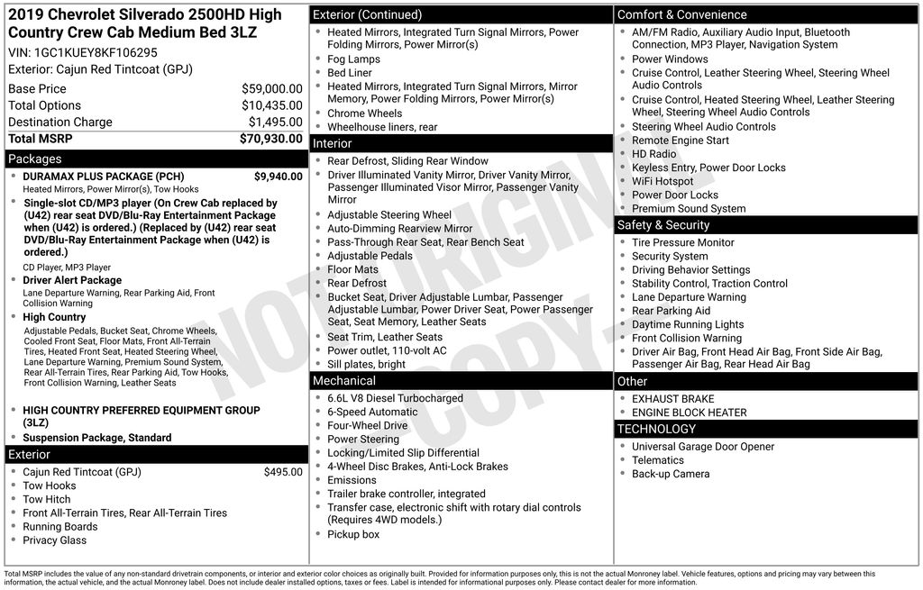 2019 Chevrolet Silverado 2500HD High Country Truck Duramax V8 Turbodiesel