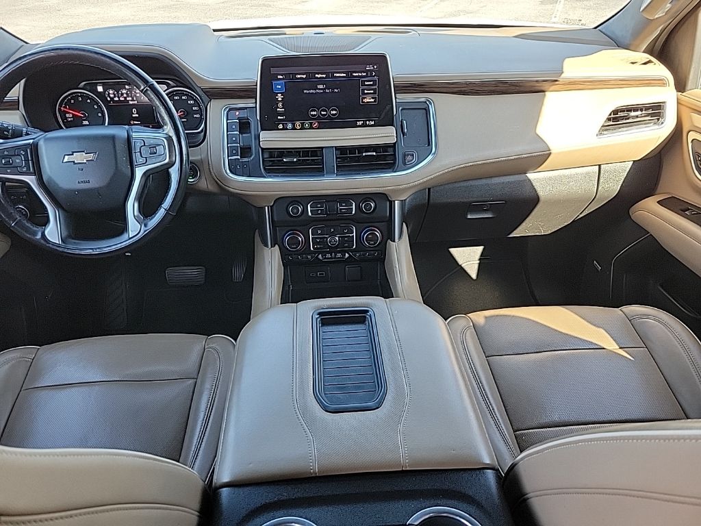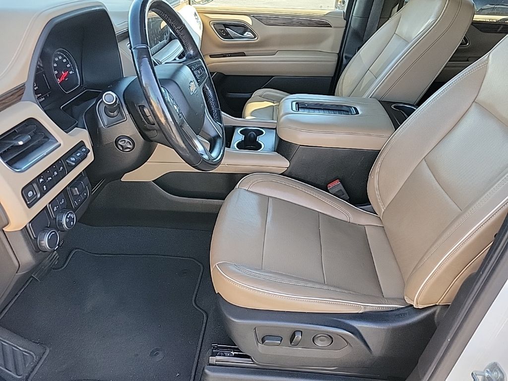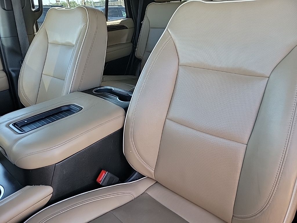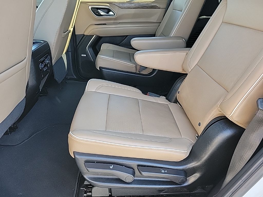 Jet Black/Maple Sugar Leather, 10 Speakers, 12-Way Power Driver & Passenger Seat Adjusters, 15" Diagonal Multi-Color Head-Up Display, 1st & 2nd Row Color-Keyed Carpeted Floor Mats, 2 USB Data Ports, 20" x 9" Polished Aluminum Wheels, 3.23 Rear Axle Ratio, 3rd Row 60/40 Power-Folding Split-Bench Seat, 3rd row seats: split-bench, 4-Wheel Disc Brakes, ABS brakes, Adaptive Cruise Control, Adaptive suspension, Advanced Trailering Package, Advanced Trailering System, Air Conditioning, Alloy wheels, AM/FM radio: SiriusXM with 360L, Apple CarPlay/Android Auto, Auto High-beam Headlights, Auto-dimming door mirrors, Auto-Dimming Inside Rear-View Mirror, Auto-dimming Rear-View mirror, Auto-leveling suspension, Automatic Heated Steering Wheel, Automatic temperature control, Bose 10-Speaker Centerpoint Surround Audio Sys Ft, Brake assist, Bright Front & Rear Door Sill Plates, Bumpers: body-color, Chrome Door Handles w/Body-Color Strip, Chrome Mirror Caps, Color-Keyed Carpeting Floor Covering, Compass, Delay-off headlights, Driver & Front Outboard Passenger Airbags, Driver door bin, Driver vanity mirror, Dual Exhaust System, Dual front impact airbags, Dual front side impact airbags, Dual-Pane Power Panoramic Sunroof, Electronic Stability Control, Emergency communication system: OnStar and Chevrolet connected services capable, Enhanced Automatic Emergency Braking, Enhanced Display & Alert Package, Enhanced Driver Information Center, Extra Capacity Cooling System, Floor Console w/Storage Area, Four wheel independent suspension, Front & Rear Park Assist, Front anti-roll bar, Front Bucket Seats, Front Center Armrest, Front dual zone A/C, Front High-Back Reclining Bucket Seats, Front reading lights, Fully automatic headlights, Garage door transmitter, Hands-Free Rear Power Programmable Liftgate, HD Radio, HD Surround Vision, Heated & Ventilated Driver & Front Passenger Seats, Heated 2nd Row Outboard Seats, Heated door mirrors, Heated Driver & Front Passenger Seats, Heated front seats, Heated rear seats, Heated steering wheel, Hitch Guidance w/Hitch View, Illuminated entry, Infotainment Display, Inside Rearview Auto-Dimming Rear Camera Mirror, Integrated Trailer Brake Controller, Lane Change Alert w/Side Blind Zone Alert, Lane Keep Assist w/Lane Departure Warning, Leather steering wheel, Leather-Wrapped Steering Wheel, LED Daytime Running Lamps, Low tire pressure warning, Magnetic Ride Control Suspension, Max Trailering Package, Memory seat, Memory Settings, Navigation System, Occupant sensing airbag, Outside Heated Power-Adjustable Mirrors, Outside temperature display, Overhead airbag, Overhead console, Panic alarm, Passenger door bin, Passenger vanity mirror, Perforated Leather Seat Trim, Power door mirrors, Power driver seat, Power Liftgate, Power passenger seat, Power Release 2nd Row Bucket Seats, Power steering, Power Tilt & Telescopic Steering Column, Power windows, Preferred Equipment Group 1LZ, Premium audio system: Chevrolet Infotainment 3, Premium Package, Radio: Chevrolet Infotainment 3 Premium System, Rain sensing wipers, Rear air conditioning, Rear anti-roll bar, Rear Camera Mirror Washer, Rear Cross Traffic Alert, Rear Pedestrian Alert, Rear reading lights, Rear window defroster, Rear window wiper, Remote keyless entry, Remote Start, Roof rack: rails only, Safety Alert Seat, Security system, SiriusXM NavTraffic, SiriusXM Radio w/360L, Speed control, Speed-sensing steering, Split folding rear seat, Spoiler, Steering wheel memory, Steering wheel mounted audio controls, Tachometer, Telescoping steering wheel, Tilt steering wheel, Traction control, Trailer Side Blind Zone Alert, Trip computer, Turn signal indicator mirrors, Universal Home Remote, Variably intermittent wipers, Ventilated front seats, Voltmeter, Jet Black/Maple Sugar Leather.