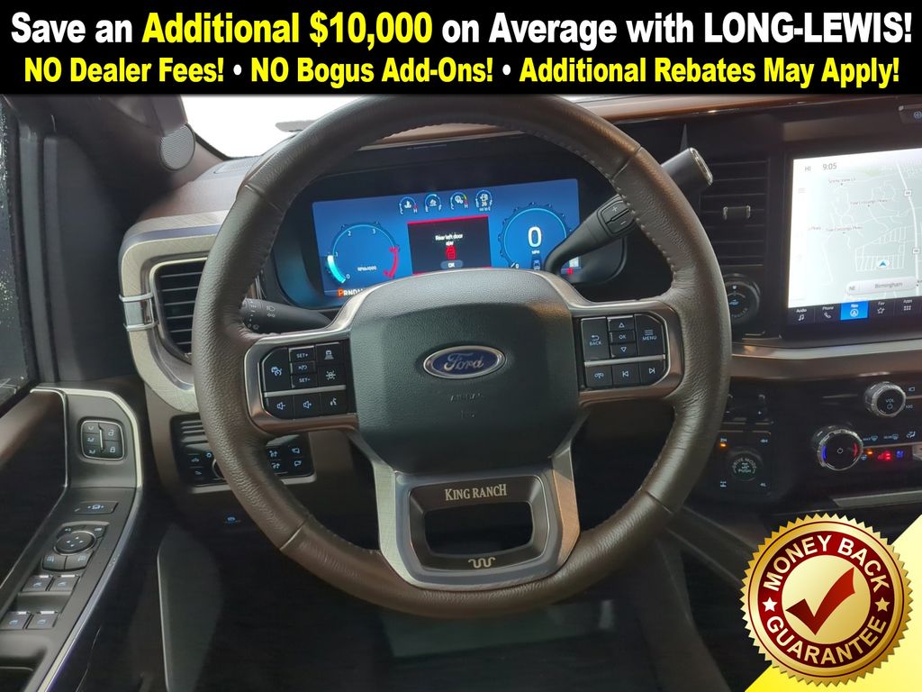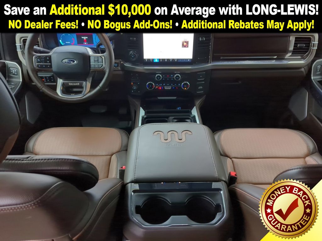Priced below KBB Fair Purchase Price! 4WD, 14 Speakers, 4-Wheel Disc Brakes, 410 Amp Dual Alternators, 5th Wheel/Gooseneck Hitch Prep Package, ABS brakes, Adjustable pedals, Air Conditioning, Alloy wheels, AM/FM radio: SiriusXM with 360L, Auto High-beam Headlights, Auto tilt-away steering wheel, Auto-dimming Rear-View mirror, Automatic temperature control, Brake assist, Compass, Delay-off headlights, Driver door bin, Driver vanity mirror, Dual front impact airbags, Dual front side impact airbags, Electronic Stability Control, Emergency communication system: SYNC 4 911 Assist, Engine Block Heater, Flow-Through Console, Front anti-roll bar, Front Bucket Seats, Front Center Armrest, Front dual zone A/C, Front fog lights, Front reading lights, Fully automatic headlights, Garage door transmitter, GVWR: F-250 >10K Package, Heads-Up Display, Heated door mirrors, Heated front seats, Heated rear seats, Heated steering wheel, High Capacity 11.6" Axle Upgrade Package, Illuminated entry, Internet access capable: FordPass Connect 5G, Leather steering wheel, Low tire pressure warning, Max Recline Seats, Memory seat, Navigation System, Order Code 700A, Outside temperature display, Overhead airbag, Overhead console, Panic alarm, Passenger door bin, Passenger vanity mirror, Pedal memory, Power door mirrors, Power driver seat, Power passenger seat, Power steering, Power windows, Radio: B&O Unleashed Sound System by Bang & Olufsen, Rain sensing wipers, Rapid-Heat Supplemental Cab Heater, Rear reading lights, Rear seat center armrest, Rear step bumper, Rear window defroster, Remote keyless entry, Security system, SiriusXM Radio with 360L, Speed control, Split folding rear seat, Steering wheel memory, Steering wheel mounted A/C controls, Steering wheel mounted audio controls, SYNC 4 with Enhanced Voice Recognition, Tachometer, Telescoping steering wheel, Tilt steering wheel, Traction control, Trip computer, Turn signal indicator mirrors, Twin Panel Power Moonroof, Unique King Ranch Leather 40/Console/40 Seats, Upfitter Switches (6), Variably intermittent wipers, Ventilated front seats, Wheels: 20" Bright Machined Cast Aluminum, 4WD.