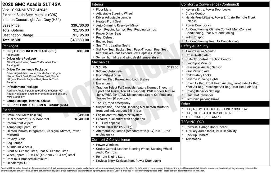 2020 GMC Acadia SLT FWD 9-Speed Automatic 3.6L V6 SIDI Satin Steel Metallic
