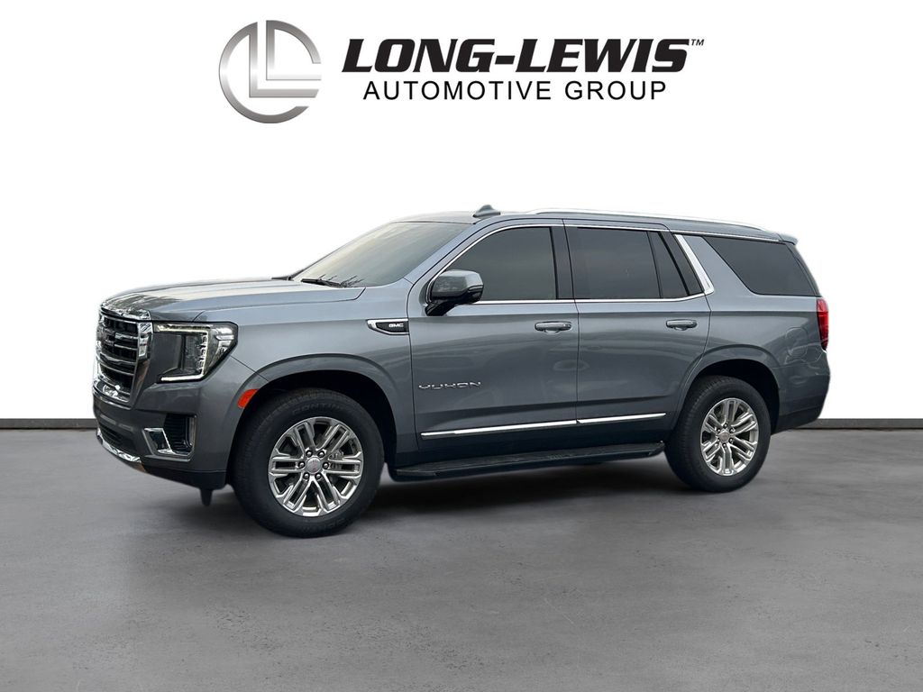 2021 GMC Yukon SLT Satin Steel Metallic SLT RWD 10-Speed Automatic with Overdrive EcoTec3 5.3L V8 12-Way Power Seat Adjusters, 2 Presets For Outside Rearview Mirrors, 2 Presets For Power Driver Seat, 3.23 Rear Axle Ratio, 3rd Row 60/40 Power-Folding Split-Bench Seat, 3rd row seats: split-bench, 4-Wheel Disc Brakes, 9 Speakers, ABS brakes, Air Conditioning, Alloy wheels, AM/FM radio: SiriusXM with 360L, Apple CarPlay/Android Auto, Auto High-beam Headlights, Auto-dimming Rear-View mirror, Automatic Emergency Braking, Automatic temperature control, Bodyside moldings, Bose 9-Speaker Stereo Audio System Feature, Brake assist, Bright Chrome Bodyside Moldings, Bright Front & Rear Door Sill Plates, Bumpers: body-color, Chrome Door Handles w/Body-Color Strip, Compass, Delay-off headlights, Driver door bin, Driver vanity mirror, Dual front impact airbags, Dual front side impact airbags, Dual-Pane Panoramic Power Sunroof, Electronic Stability Control, Emergency communication system: OnStar and GMC connected services capable, Floor Console, Following Distance Indicator, Forward Collision Alert, Four wheel independent suspension, Front & Rear Park Assist, Front anti-roll bar, Front Bucket Seats, Front Center Armrest, Front dual zone A/C, Front fog lights, Front Pedestrian Braking, Front reading lights, Fully automatic headlights, Garage door transmitter, Hands-Free Power Programmable Rear Liftgate, HD Radio, HD Surround Vision, Heated & Ventilated Driver & Front Passenger Seats, Heated 2nd Row Outboard Position Seats, Heated Automatic Steering Wheel, Heated door mirrors, Heated Driver & Front Passenger Seats, Heated front seats, Illuminated entry, Inside Rear-View Auto-Dimming Mirror, IntelliBeam Automatic High Beam On/Off, Lane Change Alert w/Side Blind Zone Alert, Lane Keep Assist w/Lane Departure Warning, Leather steering wheel, License Plate Front Mounting Package, Low tire pressure warning, Memory seat, Not Equipped w/Automatic Stop/Start, Not Equipped w/Steering Column Lock, Occupant sensing airbag, Outside Heated Power-Adjustable Mirrors, Outside temperature display, Overhead airbag, Overhead console, Panic alarm, Passenger door bin, Passenger vanity mirror, Perforated Leather Seating Surfaces, Power door mirrors, Power driver seat, Power Liftgate, Power passenger seat, Power Release 2nd Row 60/40 Split-Folding Bench Seat, Power Release 2nd Row Bucket Seats, Power steering, Power Tilt & Telescopic Steering Column, Power windows, Preferred Equipment Group 4SA, Premium Smooth Ride Suspension, Radio: AM/FM/SiriusXM, Radio: AM/FM/SiriusXM w/Navigation, Rain sensing wipers, Rear air conditioning, Rear anti-roll bar, Rear Cross Traffic Alert, Rear Media & Nav Package, Rear Pedestrian Alert, Rear reading lights, Rear seat center armrest, Rear Seat Media System, Rear window defroster, Rear window wiper, Remote keyless entry, Roof rack: rails only, Safety Alert Seat, Security system, SiriusXM w/360L, SLT Luxury Package, SLT Premium Package, Speed control, Speed-sensing steering, Split folding rear seat, Spoiler, Steering wheel mounted audio controls, Tachometer, Telescoping steering wheel, Tilt steering wheel, Traction control, Trip computer, Universal Home Remote, Variably intermittent wipers, Ventilated front seats, Voltmeter, Wheels: 20" x 9" 6-Spoke Polished Aluminum.