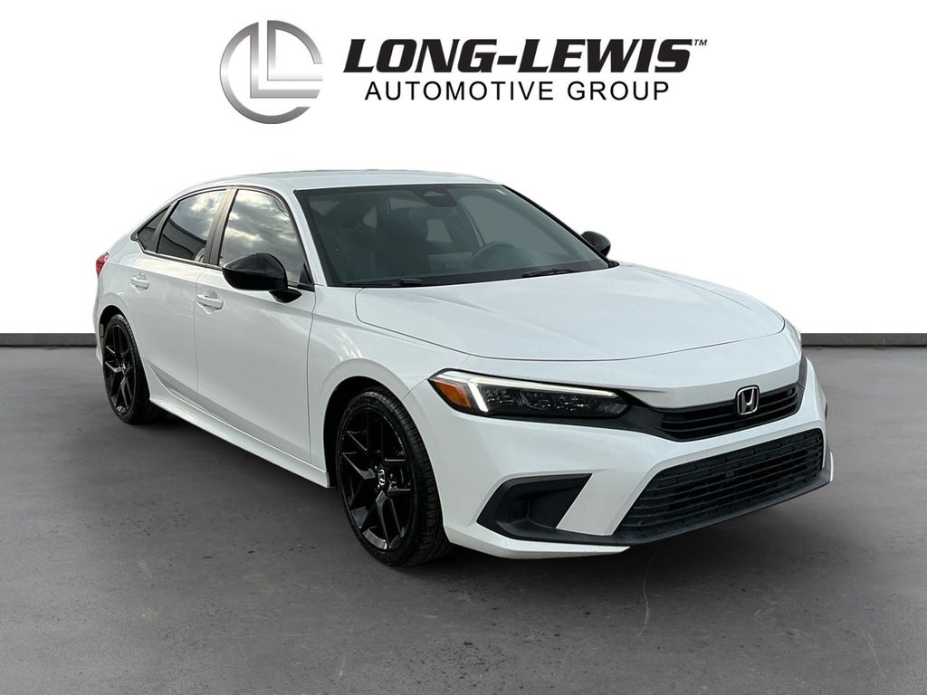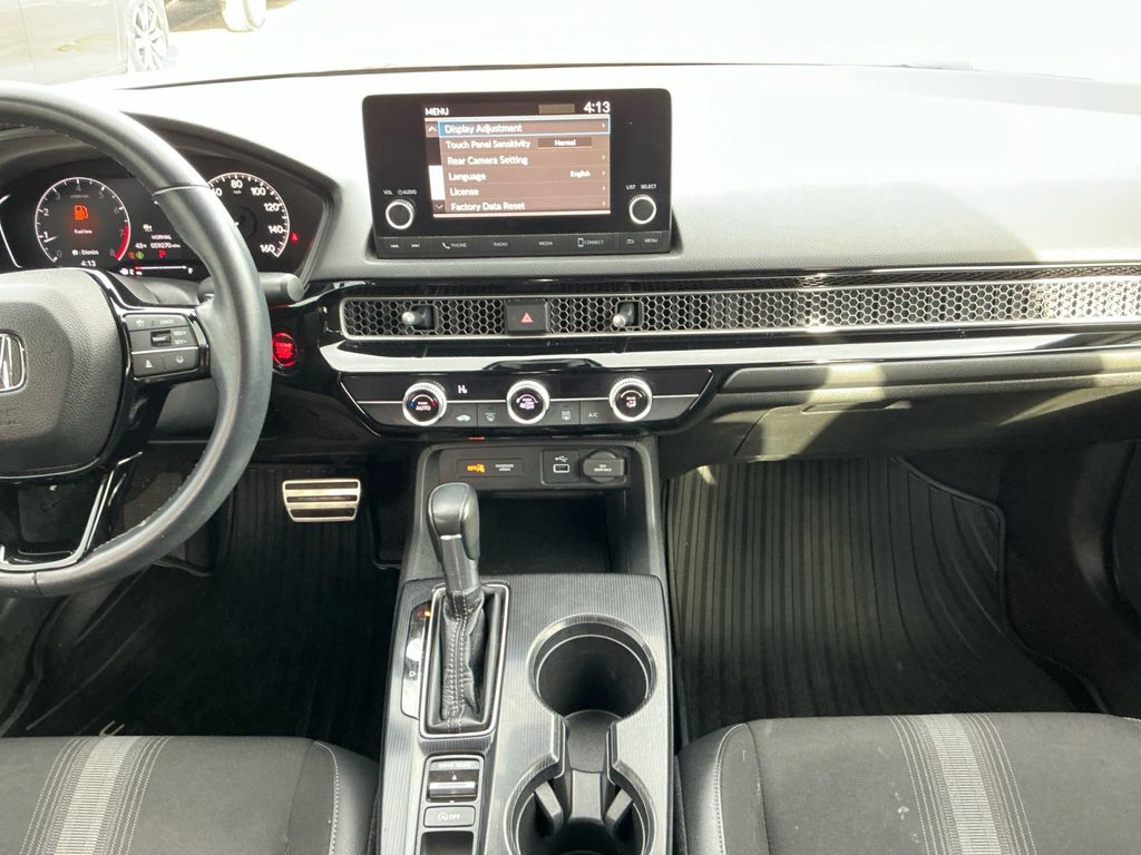 2022 Honda Civic Sport White Sport FWD CVT 2.0L I4 DOHC 16V i-VTEC Cloth, 4-Wheel Disc Brakes, 8 Speakers, ABS brakes, Adaptive Cruise Control: Adaptive Cruise Control (ACC) with Low-Speed Follow, Air Conditioning, Alloy wheels, AM/FM radio, Apple CarPlay/Android Auto, Auto High-beam Headlights, Automatic temperature control, Brake assist, Bumpers: body-color, Cloth Seat Trim, Delay-off headlights, Driver door bin, Driver vanity mirror, Dual front impact airbags, Dual front side impact airbags, Electronic Stability Control, Emergency communication system: HondaLink, Exterior Parking Camera Rear, Forward collision: Collision Mitigation Braking System (CMBS) + FCW mitigation, Four wheel independent suspension, Front anti-roll bar, Front Bucket Seats, Front Center Armrest, Front reading lights, Fully automatic headlights, Illuminated entry, Knee airbag, Leather Shift Knob, Leather steering wheel, Low tire pressure warning, Occupant sensing airbag, Outside temperature display, Overhead airbag, Panic alarm, Passenger door bin, Passenger vanity mirror, Power door mirrors, Power steering, Power windows, Radio data system, Radio: 180-Watt AM/FM Audio System, Rear anti-roll bar, Rear side impact airbag, Rear window defroster, Remote keyless entry, Security system, Speed control, Speed-sensing steering, Steering wheel mounted audio controls, Tachometer, Telescoping steering wheel, Tilt steering wheel, Traction control, Trip computer, Wheels: 18" Gloss Black Alloy, Cloth.