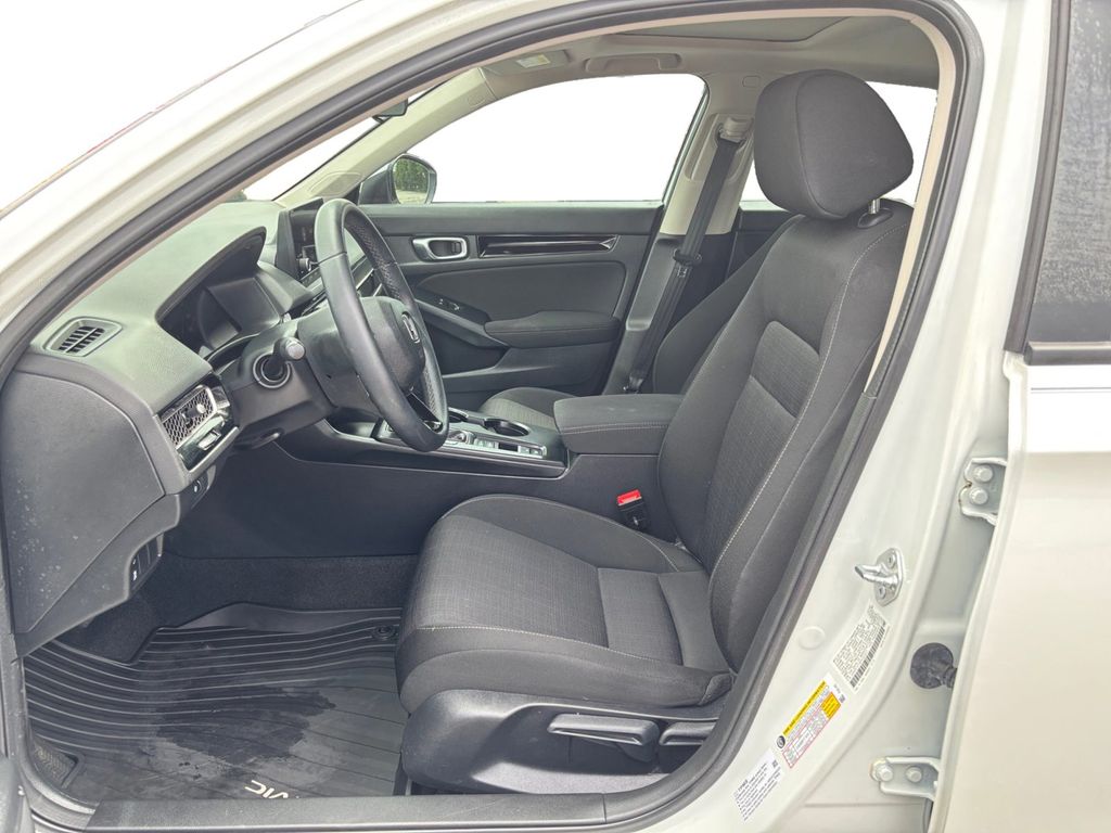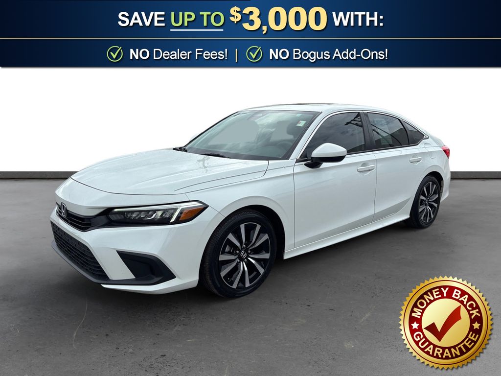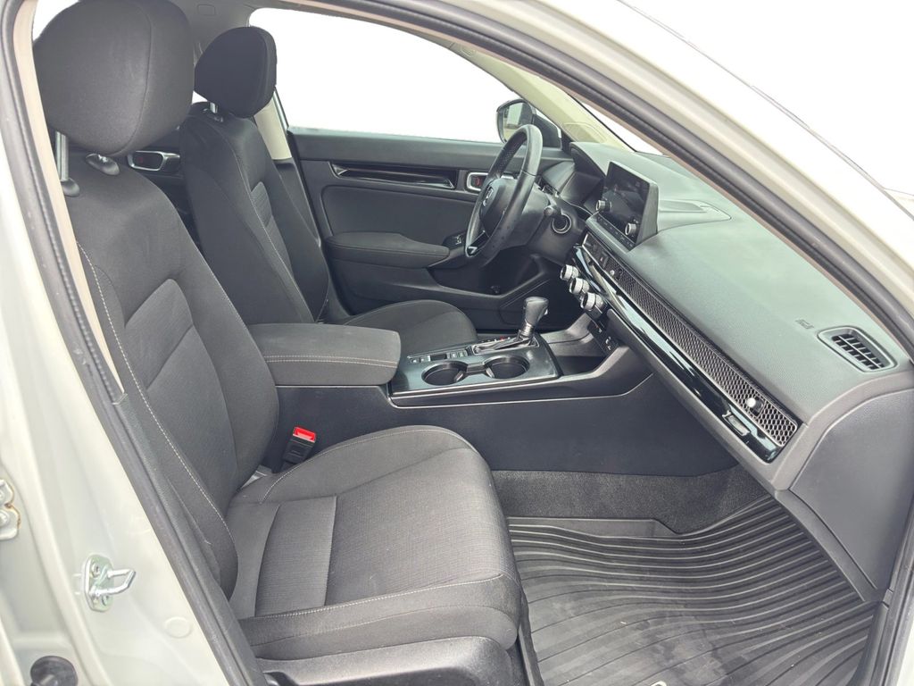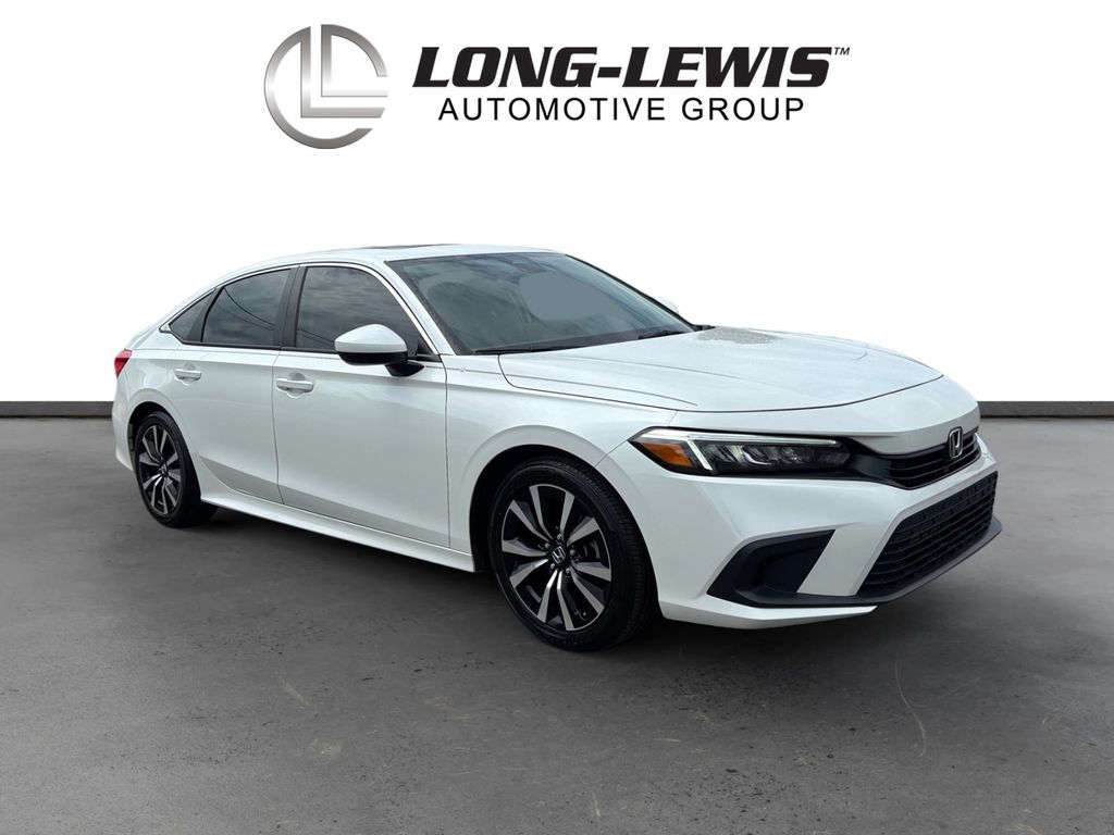 2023 Honda Civic EX White EX FWD CVT 1.5L I-4 DI DOHC Turbocharged Cloth, 4-Wheel Disc Brakes, 8 Speakers, ABS brakes, Adaptive Cruise Control: Adaptive Cruise Control (ACC) with Low-Speed Follow, Air Conditioning, Alloy wheels, AM/FM radio, Apple CarPlay/Android Auto, Auto High-beam Headlights, Automatic temperature control, Brake assist, Bumpers: body-color, Cloth Seat Trim, Delay-off headlights, Driver door bin, Driver vanity mirror, Dual front impact airbags, Dual front side impact airbags, Electronic Stability Control, Emergency communication system: HondaLink, Exterior Parking Camera Rear, Four wheel independent suspension, Front anti-roll bar, Front Bucket Seats, Front Center Armrest, Front dual zone A/C, Front reading lights, Fully automatic headlights, Heated door mirrors, Heated Front Bucket Seats, Heated front seats, Illuminated entry, Knee airbag, Leather Shift Knob, Leather steering wheel, Low tire pressure warning, Occupant sensing airbag, Outside temperature display, Overhead airbag, Overhead console, Panic alarm, Passenger door bin, Passenger vanity mirror, Power door mirrors, Power moonroof, Power steering, Power windows, Radio data system, Radio: 180-Watt Audio System w/8 Speakers, Rear anti-roll bar, Rear seat center armrest, Rear side impact airbag, Rear window defroster, Remote keyless entry, Security system, Speed control, Speed-sensing steering, Split folding rear seat, Steering wheel mounted audio controls, Tachometer, Telescoping steering wheel, Tilt steering wheel, Traction control, Trip computer, Variably intermittent wipers, Wheels: 17" Alloy w/Gloss Black Inserts, Cloth.
