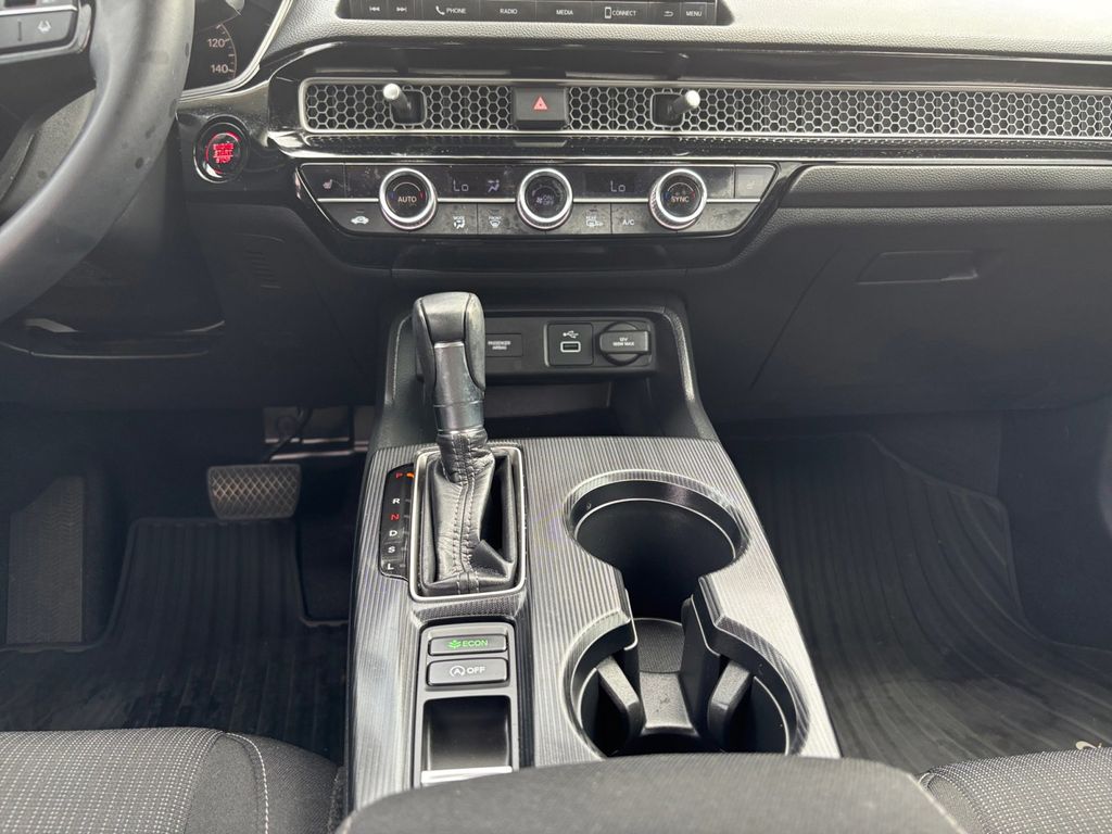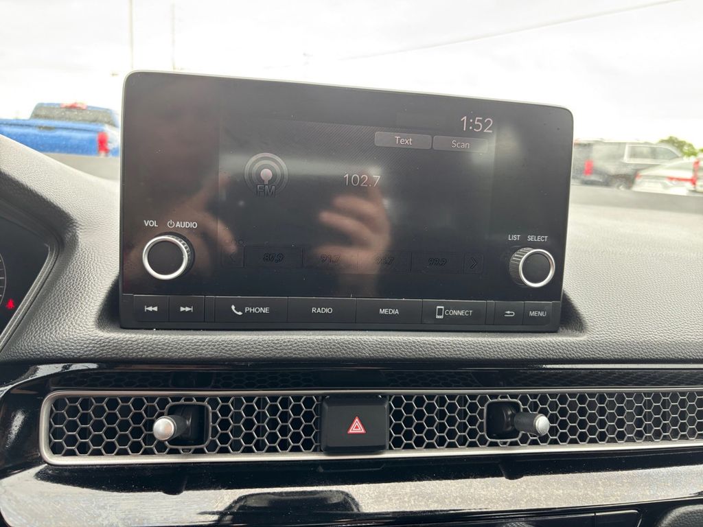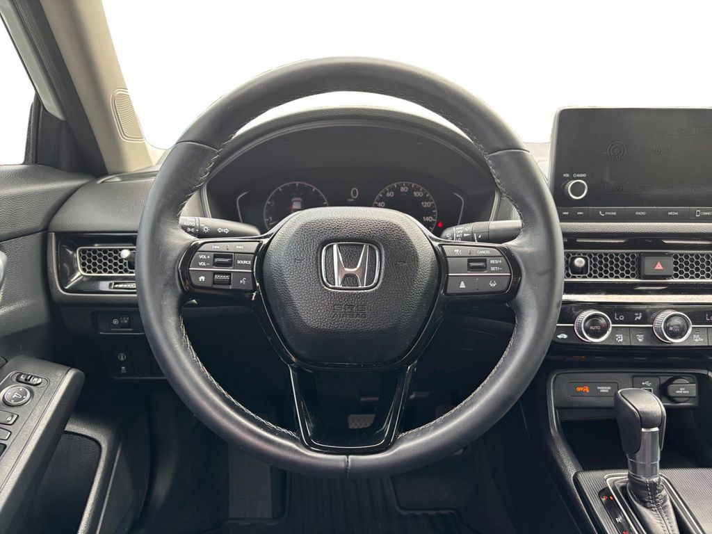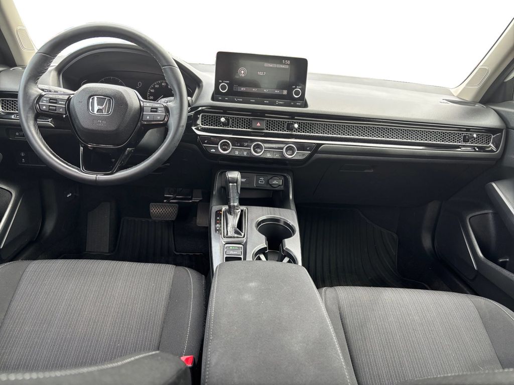 2023 Honda Civic EX White EX FWD CVT 1.5L I-4 DI DOHC Turbocharged Cloth, 4-Wheel Disc Brakes, 8 Speakers, ABS brakes, Adaptive Cruise Control: Adaptive Cruise Control (ACC) with Low-Speed Follow, Air Conditioning, Alloy wheels, AM/FM radio, Apple CarPlay/Android Auto, Auto High-beam Headlights, Automatic temperature control, Brake assist, Bumpers: body-color, Cloth Seat Trim, Delay-off headlights, Driver door bin, Driver vanity mirror, Dual front impact airbags, Dual front side impact airbags, Electronic Stability Control, Emergency communication system: HondaLink, Exterior Parking Camera Rear, Four wheel independent suspension, Front anti-roll bar, Front Bucket Seats, Front Center Armrest, Front dual zone A/C, Front reading lights, Fully automatic headlights, Heated door mirrors, Heated Front Bucket Seats, Heated front seats, Illuminated entry, Knee airbag, Leather Shift Knob, Leather steering wheel, Low tire pressure warning, Occupant sensing airbag, Outside temperature display, Overhead airbag, Overhead console, Panic alarm, Passenger door bin, Passenger vanity mirror, Power door mirrors, Power moonroof, Power steering, Power windows, Radio data system, Radio: 180-Watt Audio System w/8 Speakers, Rear anti-roll bar, Rear seat center armrest, Rear side impact airbag, Rear window defroster, Remote keyless entry, Security system, Speed control, Speed-sensing steering, Split folding rear seat, Steering wheel mounted audio controls, Tachometer, Telescoping steering wheel, Tilt steering wheel, Traction control, Trip computer, Variably intermittent wipers, Wheels: 17" Alloy w/Gloss Black Inserts, Cloth.