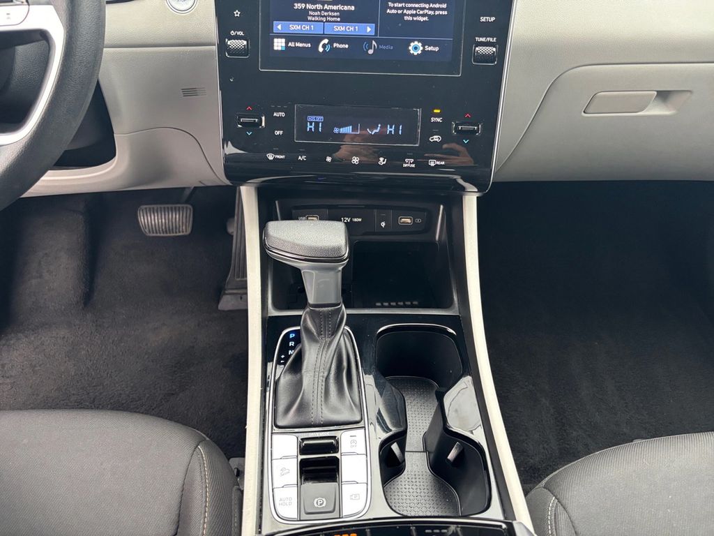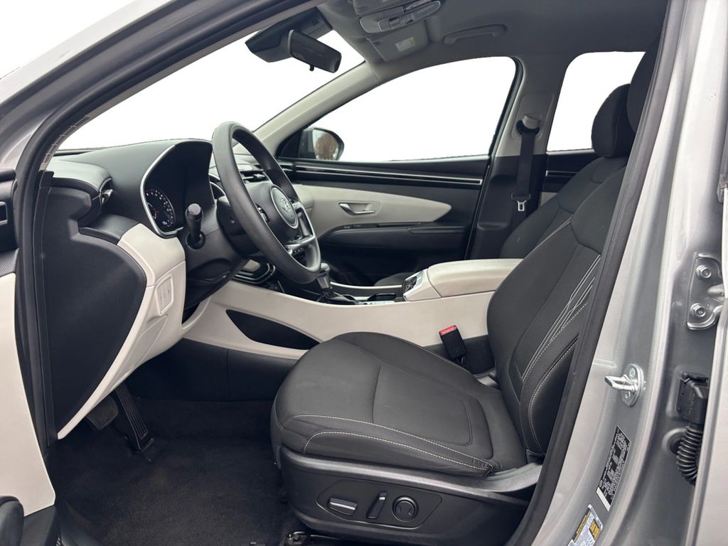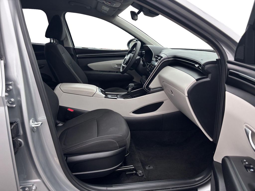 2024 Hyundai Tucson SEL Shimmering Silver SEL FWD 8-Speed Automatic with SHIFTRONIC 2.5L I4 DGI DOHC 16V LEV3-SULEV30 187hp 3.648 Axle Ratio, 4-Wheel Disc Brakes, 6 Speakers, ABS brakes, Air Conditioning, Alloy wheels, AM/FM radio: SiriusXM, Apple CarPlay & Android Auto, Auto High-beam Headlights, Automatic temperature control, Brake assist, Bumpers: body-color, Delay-off headlights, Driver door bin, Driver vanity mirror, Dual front impact airbags, Dual front side impact airbags, Electronic Stability Control, Emergency communication system: Blue Link Connected Car Service (3-year complimentary subscription), Exterior Parking Camera Rear, Four wheel independent suspension, Front anti-roll bar, Front Bucket Seats, Front Center Armrest, Front dual zone A/C, Front reading lights, Fully automatic headlights, Heated door mirrors, Heated Front Bucket Seats, Heated front seats, Illuminated entry, Low tire pressure warning, Occupant sensing airbag, Option Group 01, Outside temperature display, Overhead airbag, Overhead console, Panic alarm, Passenger door bin, Passenger vanity mirror, Power door mirrors, Power driver seat, Power Liftgate, Power steering, Power windows, Radio data system, Radio: AM/FM/HD Audio System, Rear anti-roll bar, Rear seat center armrest, Rear side impact airbag, Rear window defroster, Rear window wiper, Remote keyless entry, Roof rack: rails only, Security system, Speed control, Split folding rear seat, Spoiler, Stain & Odor Resistant Cloth Seat Trim, Steering wheel mounted audio controls, Tachometer, Telescoping steering wheel, Tilt steering wheel, Traction control, Trip computer, Variably intermittent wipers, Wheels: 17" x 7.0J" Alloy, Wheels: 19" x 7.5J" Machine-Face Finish Alloy.