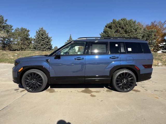 2025 Hyundai Santa Fe Calligraphy Atlantis Blue Calligraphy FWD Shiftronic 2.5L I4 Black Leather, 12 Speakers, 3rd row seats: bench, 4-Wheel Disc Brakes, ABS brakes, Air Conditioning, Alloy wheels, AM/FM radio: SiriusXM, Apple CarPlay & Android Auto, Auto High-beam Headlights, Auto-dimming Rear-View mirror, Automatic temperature control, Brake assist, Bumpers: body-color, Cargo Cover, Cargo Net, Carpeted Floor Mats, Delay-off headlights, Driver door bin, Driver vanity mirror, Dual front impact airbags, Dual front side impact airbags, Electronic Stability Control, Emergency communication system, Exterior Parking Camera Rear, First Aid Kit, Four wheel independent suspension, Front anti-roll bar, Front Bucket Seats, Front Center Armrest, Front dual zone A/C, Front reading lights, Fully automatic headlights, Garage door transmitter: HomeLink, Heads-Up Display, Heated & Ventilated Front Bucket Seats, Heated door mirrors, Heated front seats, Heated rear seats, Heated steering wheel, Illuminated entry, Knee airbag, Leather steering wheel, Low tire pressure warning, Memory seat, Mudguards, Navigation System, Occupant sensing airbag, Option Group 01, Outside temperature display, Overhead airbag, Overhead console, Panic alarm, Passenger door bin, Passenger vanity mirror, Power door mirrors, Power driver seat, Power Liftgate, Power moonroof, Power passenger seat, Power steering, Power windows, Premium Nappa Leather Seat Trim, Radio: AM/FM/HD Bose Premium Audio System, Rain sensing wipers, Rear anti-roll bar, Rear side impact airbag, Rear window defroster, Rear window wiper, Remote keyless entry, Roadside Assistance Kit, Security system, Speed control, Speed-sensing steering, Split folding rear seat, Spoiler, Steering wheel mounted audio controls, Tachometer, Telescoping steering wheel, Tilt steering wheel, Traction control, Trip computer, Turn signal indicator mirrors, Variably intermittent wipers, Ventilated front seats, Wheels: 21" x 8.5J Unique Dark Finish Alloy, Black Leather.