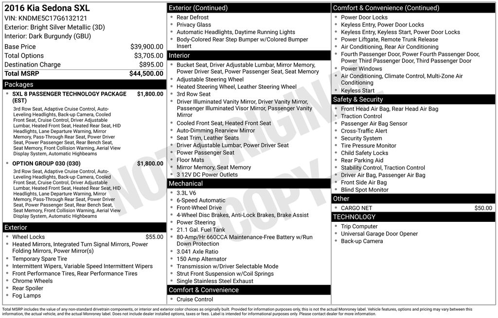2016 Kia Sedona SXL Minivan/Van V6 DGI