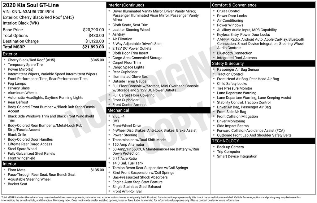 2020 Kia Soul GT-Line **Here at Long-Lewis we believe in being transparent. We have no Doc fees, or any other hidden fees. We are a one price store and give our best price up front and they are clearly marked on all our inventory.** Cherry Black/Red Roof FWD CVT 2.0L I4 MPI DOHC 16V LEV3-SULEV30 147hp