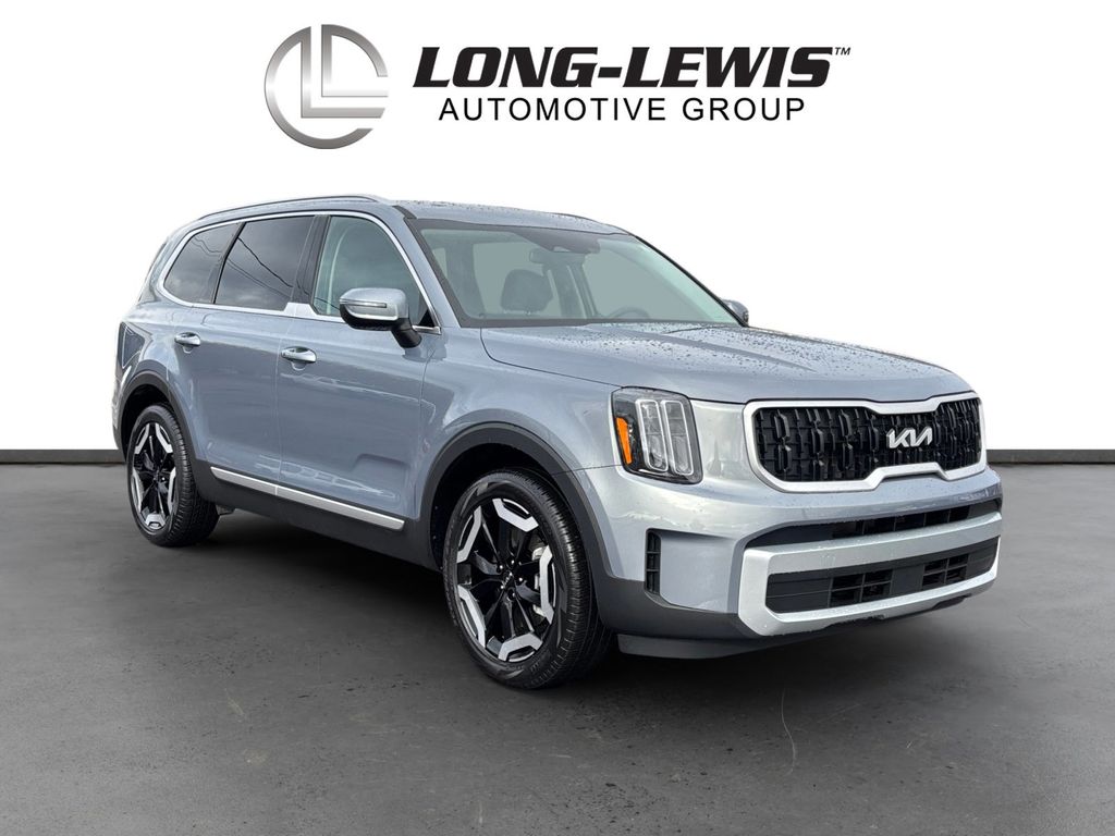 2025 Kia Telluride EX Everlasting Silver EX FWD 8-Speed Automatic 3.8L V6 DOHC 3rd row seats: split-bench, 4-Wheel Disc Brakes, 6 Speakers, ABS brakes, Air Conditioning, Alloy wheels, AM/FM radio: SiriusXM, Apple CarPlay & Android Auto, Auto High-beam Headlights, Auto-dimming Rear-View mirror, Automatic temperature control, Brake assist, Bumpers: body-color, Carpeted Floor Mats, Compass, Delay-off headlights, Driver door bin, Driver vanity mirror, Dual front impact airbags, Dual front side impact airbags, Electronic Stability Control, Emergency communication system: 911 Connect, Exterior Parking Camera Rear, Four wheel independent suspension, Front anti-roll bar, Front Bucket Seats, Front Center Armrest, Front dual zone A/C, Front reading lights, Fully automatic headlights, Heated & Ventilated Front Bucket Seats, Heated door mirrors, Heated front seats, Illuminated entry, Knee airbag, Leather Seat Trim, Leather Shift Knob, Leather steering wheel, Low tire pressure warning, Navigation System, Occupant sensing airbag, Outside temperature display, Overhead airbag, Overhead console, Panic alarm, Passenger door bin, Passenger vanity mirror, Power door mirrors, Power driver seat, Power Liftgate, Power moonroof, Power passenger seat, Power steering, Power windows, Radio data system, Radio: AM/FM Display Audio System, Rear air conditioning, Rear anti-roll bar, Rear audio controls, Rear reading lights, Rear seat center armrest, Rear side impact airbag, Rear window defroster, Rear window wiper, Reclining 3rd row seat, Remote keyless entry, Security system, Speed control, Speed-sensing steering, Split folding rear seat, Spoiler, Steering wheel mounted audio controls, Tachometer, Telescoping steering wheel, Tilt steering wheel, Traction control, Trip computer, Turn signal indicator mirrors, Variably intermittent wipers, Ventilated front seats, Wheels: 20" x 7.5" Black Finish.