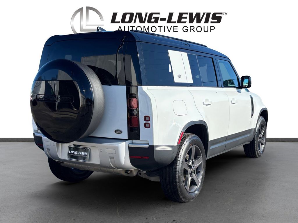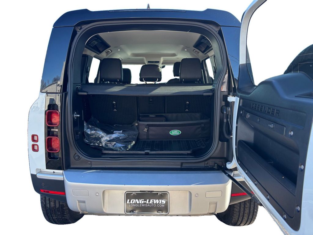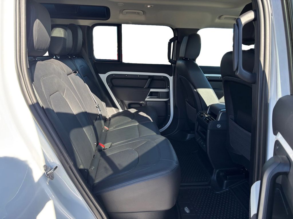 2023 Land Rover Defender 110 S White S 4WD 8-Speed Automatic 2.0L Turbocharged 11 Speakers, 12-Way Heated Electric Memory Seats, 4-Wheel Disc Brakes, 4.1 Axle Ratio, ABS brakes, Air Conditioning, Alloy wheels, AM/FM radio: SiriusXM, Apple CarPlay & Android Auto, Auto High-beam Headlights, Auto-dimming door mirrors, Auto-dimming Rear-View mirror, Automatic temperature control, Brake assist, Bumpers: body-color, Compass, Delay-off headlights, Driver door bin, Driver vanity mirror, Dual front impact airbags, Dual front side impact airbags, Electronic Stability Control, Exterior Parking Camera Rear, Four wheel independent suspension, Front anti-roll bar, Front Bucket Seats, Front Center Armrest, Front dual zone A/C, Front reading lights, Fully automatic headlights, Garage door transmitter: HomeLink, Grained Leather Seat Trim, Heated door mirrors, Heated front seats, Illuminated entry, Leather Shift Knob, Leather steering wheel, Low tire pressure warning, Memory seat, Navigation system: Connected Navigation PIVI Pro, Occupant sensing airbag, Outside temperature display, Overhead airbag, Overhead console, Panic alarm, Passenger door bin, Passenger vanity mirror, Power door mirrors, Power driver seat, Power passenger seat, Power steering, Power windows, Radio data system, Radio: 400W 11 Speaker Meridian Sound System, Rain sensing wipers, Rear anti-roll bar, Rear fog lights, Rear reading lights, Rear seat center armrest, Rear window defroster, Rear window wiper, Remote keyless entry, Security system, Speed control, Speed-sensing steering, Speed-Sensitive Wipers, Split folding rear seat, Steering wheel mounted audio controls, Tachometer, Telescoping steering wheel, Tilt steering wheel, Traction control, Trip computer, Variably intermittent wipers, Weather band radio, Wheels: 19" Gloss Sparkle Silver Style 6010.