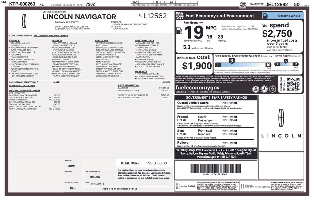 2018 Lincoln Navigator Select RWD 10-Speed Automatic V6 White Platinum Clearcoat Metallic