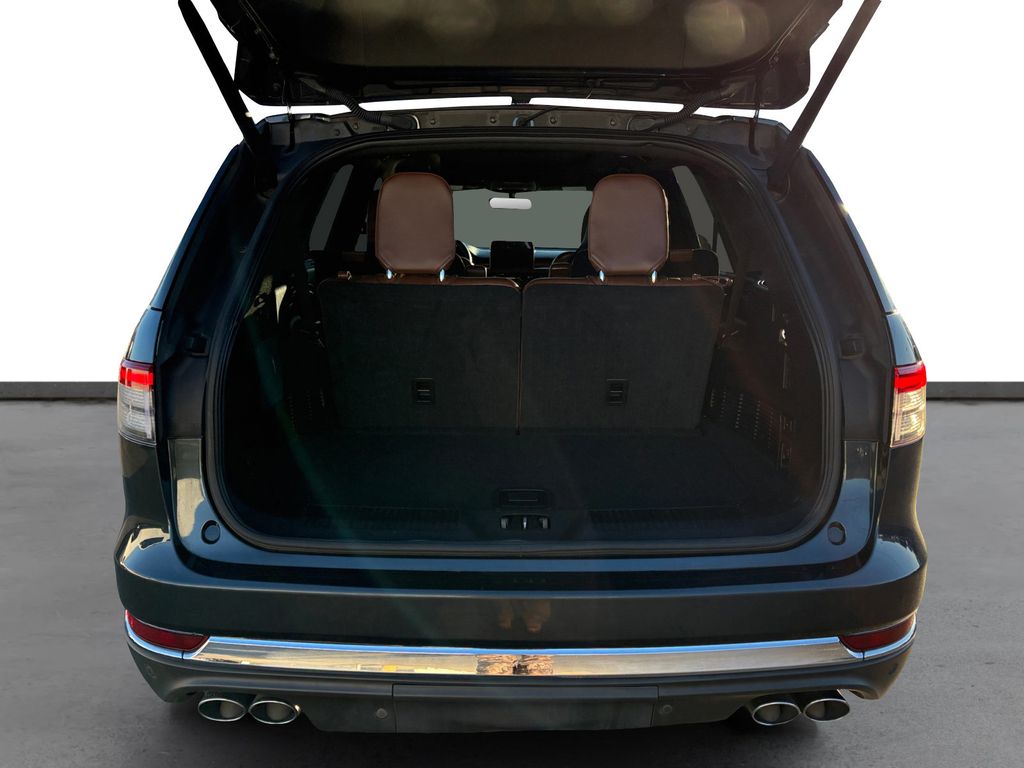 2021 Lincoln Aviator Reserve Blue Reserve AWD 10-Speed Automatic 3.0L V6 14 Speakers, 3.58 Axle Ratio, 30-Way Perfect Position Seats w/Active Motion, 3rd row seats: split-bench, 4-Pin & 7-Pin Connectors, 4-Wheel Disc Brakes, ABS brakes, Active Park Assist Plus, Adaptive Cruise Control w/Traffic Jam Assist, Adaptive Pixel LED Headlamps, Adaptive suspension, Air Conditioning, Alloy wheels, AM/FM radio: SiriusXM, Audio memory, Auto Air Refresh, Auto Heated/Ventilated Driver & Passenger Seats, Auto High-beam Headlights, Auto-dimming door mirrors, Auto-dimming Rear-View mirror, Automatic temperature control, Blind Spot Detection w/Cross Traffic Alert, Brake assist, Bumpers: body-color, Class IV Hitch & Wiring, Class IV Trailer Tow Package, Compass, Convenience Package, Delay-off headlights, Driver door bin, Driver vanity mirror, Dual front impact airbags, Dual front side impact airbags, Electronic Stability Control, Elements Package Plus, Emergency communication system, Equipment Group 202A, Evasive Steering Assist, Four wheel independent suspension, Front anti-roll bar, Front Bucket Seats, Front Center Armrest, Front dual zone A/C, Front fog lights, Front reading lights, Fully automatic headlights, Garage door transmitter, Head-Up Display, Heated door mirrors, Heated front seats, Heated Steering Wheel, Heated VisioBlade Wipers, Heated/Ventilated 2nd Row Outboard Seats, HVAC memory, Illuminated entry, Illumination Package, Knee airbag, Lincoln Co-Pilot360 Plus, Lincoln Lit Star in Grille, Low tire pressure warning, Luxury Package, Memory seat, Navigation System, Occupant sensing airbag, Outside temperature display, Overhead airbag, Overhead console, Panic alarm, Passenger door bin, Passenger vanity mirror, Phone As A Key, Power door mirrors, Power driver seat, Power Liftgate, Power moonroof: Panoramic Vista Roof, Power passenger seat, Power steering, Power windows, Premium Lthr Heated/Ventilated Fnt Captain's Chairs, Radio data system, Radio: Revel AM/FM Audio System w/14 Speakers, Radio: Revel Ultima 3D Audio System w/28 Speakers, Rain sensing wipers, Rear air conditioning, Rear anti-roll bar, Rear audio controls, Rear Door Sunshades, Rear dual zone A/C, Rear reading lights, Rear window defroster, Rear window wiper, Remote keyless entry, Reverse Brake Assist, Security system, SiriusXM, Smart Trailer Tow, Speed control, Speed-Sensitive Wipers, Split folding rear seat, Spoiler, Steering wheel memory, Steering wheel mounted A/C controls, Steering wheel mounted audio controls, SYNC 3 Communication & Entertainment System, Tachometer, Telescoping steering wheel, Tilt steering wheel, Traction control, Trailer Sway Control, Trip computer, Turn signal indicator mirrors, Variably intermittent wipers, Wheels: 20" Bright-Machined Aluminum, Wheels: 22" Bright-Machined Aluminum, Wireless Charging Pad.