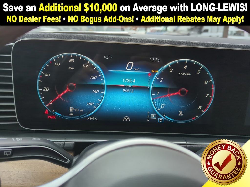 3.69 Axle Ratio, 4-Wheel Disc Brakes, 8 Speakers, ABS brakes, Air Conditioning, Alloy wheels, AM/FM radio: SiriusXM, Anti-whiplash front head restraints, Apple CarPlay®/Android Auto®, Auto High-beam Headlights, Auto tilt-away steering wheel, Auto-dimming door mirrors, Auto-dimming Rear-View mirror, Automatic temperature control, Brake assist, Bumpers: body-color, Compass, Delay-off headlights, Driver door bin, Driver vanity mirror, Dual front impact airbags, Dual front side impact airbags, Electronic Stability Control, Emergency communication system: eCall Emergency System, Exterior Parking Camera Rear, Four wheel independent suspension, Front anti-roll bar, Front Bucket Seats, Front Center Armrest, Front dual zone A/C, Front reading lights, Fully automatic headlights, Garage door transmitter: HomeLink, Genuine wood console insert, Genuine wood dashboard insert, Genuine wood door panel insert, Heated door mirrors, Heated front seats, Heated Power Front Seats w/Driver Memory, Illuminated entry, Knee airbag, Leather steering wheel, Low tire pressure warning, MB-Tex Upholstery, Memory seat, Navigation system: MBUX, Occupant sensing airbag, Outside temperature display, Overhead airbag, Panic alarm, Passenger door bin, Passenger vanity mirror, Power adjustable front head restraints, Power door mirrors, Power driver seat, Power Liftgate, Power moonroof, Power passenger seat, Power steering, Power windows, Premium audio system: MBUX, Radio data system, Radio: 12.3" Media Display w/Touchscreen, Rain sensing wipers, Rear anti-roll bar, Rear fog lights, Rear reading lights, Rear seat center armrest, Rear window defroster, Rear window wiper, Remote keyless entry, Roof rack: rails only, Security system, Speed control, Speed-sensing steering, Speed-Sensitive Wipers, Split folding rear seat, Spoiler, Steering wheel memory, Steering wheel mounted audio controls, Tachometer, Telescoping steering wheel, Tilt steering wheel, Traction control, Trip computer, Turn signal indicator mirrors, Weather band radio, Wheels: 19" Twin 5-Spoke.
