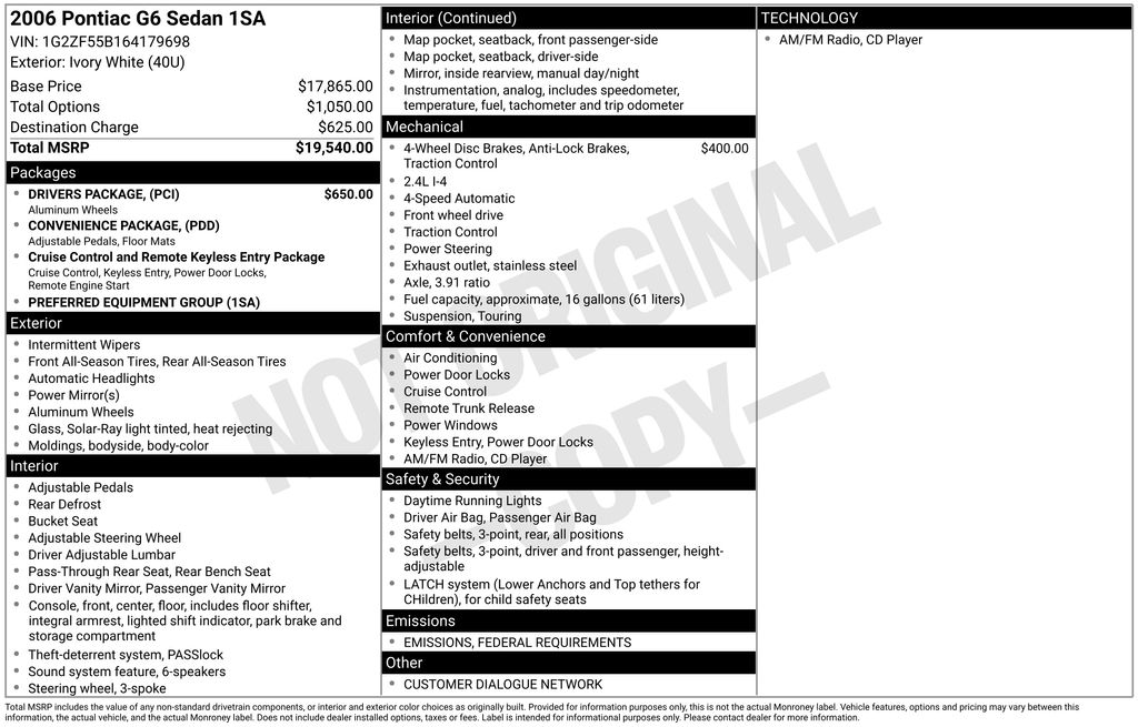 2006 Pontiac G6 Base Sedan ECOTEC I4 MPI