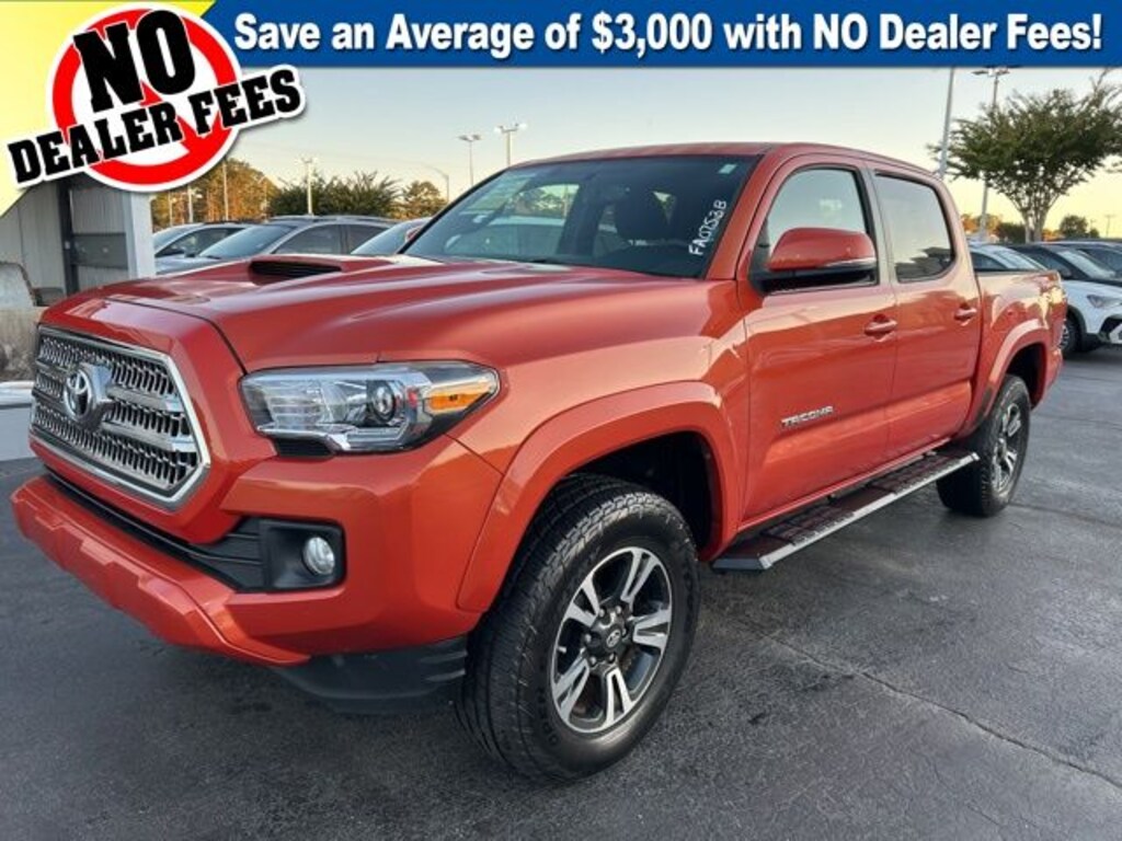 2016 Toyota Tacoma Orange RWD 6-Speed Automatic V6 ABS brakes, Air Conditioning, AM/FM radio: SiriusXM, Anti-whiplash front head restraints, Axle Ratio: 3.91, Brake assist, Bumpers: body-color, CD player, Driver door bin, Dual front impact airbags, Dual front side impact airbags, Electronic Stability Control, Exterior Parking Camera Rear, Front anti-roll bar, Front Bucket Seats, Front Center Armrest, Front fog lights, Front reading lights, Front wheel independent suspension, Illuminated entry, Knee airbag, Low tire pressure warning, Occupant sensing airbag, Outside temperature display, Overhead airbag, Overhead console, Panic alarm, Passenger door bin, Power door mirrors, Power steering, Power windows, Rear step bumper, Remote keyless entry, Speed control, Speed-sensing steering, Split folding rear seat, Steering wheel mounted audio controls, Tachometer, Telescoping steering wheel, Tilt steering wheel, Traction control, Trip computer, Variably intermittent wipers.