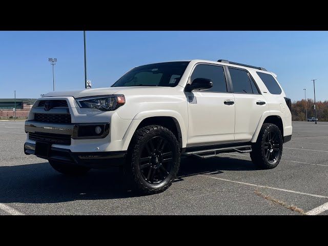 2019 Toyota 4Runner Limited Nightshade Blizzard Pearl Limited Nightshade 4WD 5-Speed Automatic with Overdrive 4.0L V6 SMPI DOHC 4WD, Graphite Leather, 15 Speakers, 3.727 Axle Ratio, 4-Wheel Disc Brakes, ABS brakes, Air Conditioning, Alloy wheels, AM/FM radio: SiriusXM, Anti-whiplash front head restraints, Auto-Dimming Rear-View Mirror, Auto-dimming Rear-View mirror, Automatic temperature control, Black Power Heated Mirrors, Black Roof Rails, Brake assist, Bumpers: body-color, CD player, Compass, Delay-off headlights, Driver door bin, Driver vanity mirror, Dual front impact airbags, Dual front side impact airbags, Electronic Stability Control, Emergency communication system: Safety Connect, Exterior Parking Camera Rear, Front anti-roll bar, Front Bucket Seats, Front Center Armrest, Front dual zone A/C, Front fog lights, Front reading lights, Front wheel independent suspension, Fully automatic headlights, Garage Door Opener, Garage door transmitter: HomeLink, Heated door mirrors, Heated front seats, Heated/Ventilated Front Bucket Seats, Illuminated entry, Knee airbag, Low tire pressure warning, Memory seat, Moonroof w/Tilt Up & Slide, Navigation System, Nightshade Edition, Nightshade Leather Seat Trim, Occupant sensing airbag, Outside temperature display, Overhead airbag, Overhead console, Panic alarm, Passenger door bin, Passenger vanity mirror, Power door mirrors, Power driver seat, Power moonroof, Power passenger seat, Power steering, Power windows, Radio: Entune Premium JBL Audio w/Navigation, Rear anti-roll bar, Rear seat center armrest, Rear window defroster, Rear window wiper, Remote keyless entry, Right & Left Individual Air Conditioner, Roof rack: rails only, Security system, Sliding Rear Cargo Deck, Speed control, Speed-sensing steering, Split folding rear seat, Spoiler, Steering wheel mounted audio controls, Tachometer, Telescoping steering wheel, Tilt steering wheel, Traction control, Trip computer, Trunk Carpet, Turn signal indicator mirrors, Variably intermittent wipers, Ventilated front seats, Wheels: 20" Black Alloy, 4WD, Graphite Leather.