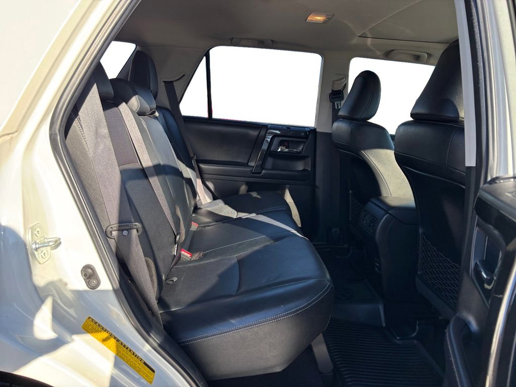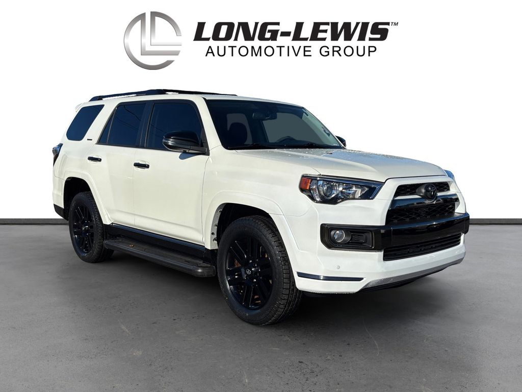 2019 Toyota 4Runner White 4WD 5-Speed Automatic with Overdrive 4.0L V6 SMPI DOHC 4WD, 3.727 Axle Ratio, 4-Wheel Disc Brakes, ABS brakes, Air Conditioning, Alloy wheels, AM/FM radio: SiriusXM, Anti-whiplash front head restraints, Brake assist, Bumpers: body-color, CD player, Driver door bin, Driver vanity mirror, Dual front impact airbags, Dual front side impact airbags, Electronic Stability Control, Emergency communication system: Safety Connect, Exterior Parking Camera Rear, Front anti-roll bar, Front Bucket Seats, Front Center Armrest, Front fog lights, Front reading lights, Front wheel independent suspension, Heated door mirrors, Illuminated entry, Knee airbag, Low tire pressure warning, Occupant sensing airbag, Outside temperature display, Overhead airbag, Overhead console, Panic alarm, Passenger door bin, Passenger vanity mirror, Power door mirrors, Power driver seat, Power steering, Power windows, Rear anti-roll bar, Rear seat center armrest, Rear window defroster, Rear window wiper, Remote keyless entry, Security system, Speed control, Speed-sensing steering, Split folding rear seat, Spoiler, Steering wheel mounted audio controls, Tachometer, Telescoping steering wheel, Tilt steering wheel, Traction control, Trip computer, Variably intermittent wipers, 4WD.
